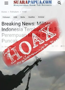 Terdesaknya kelompok teroris OPM ini ternyata memancing respon pendukungnya untuk menyebar fitnah dan berita bohong. Hal ini disampaikan Kapen Kogabwilhan III Kolonel Czi IGN Suristiawa menanggapi berita penembakan tiga perempuan di Kab Puncak oleh militer Indonesia yang dimuat oleh media online suarapapua.com (15/5). Suriastawa menegaskan bahwa berita tersebut fitnah dan hoaks atau bohong.