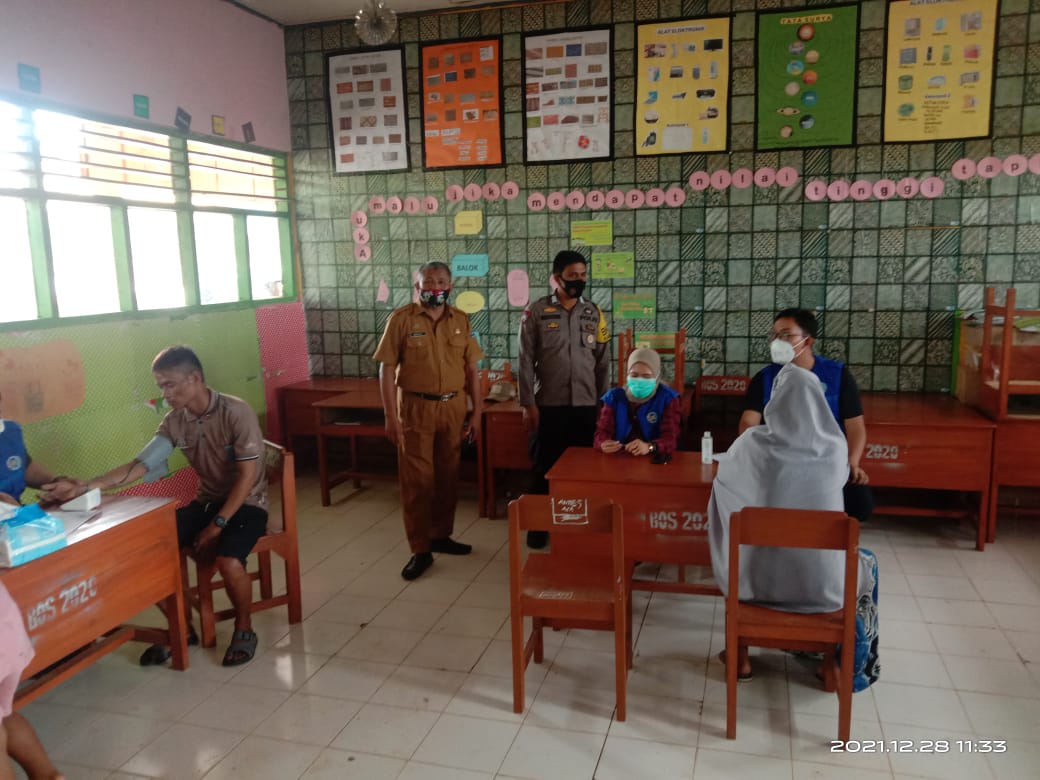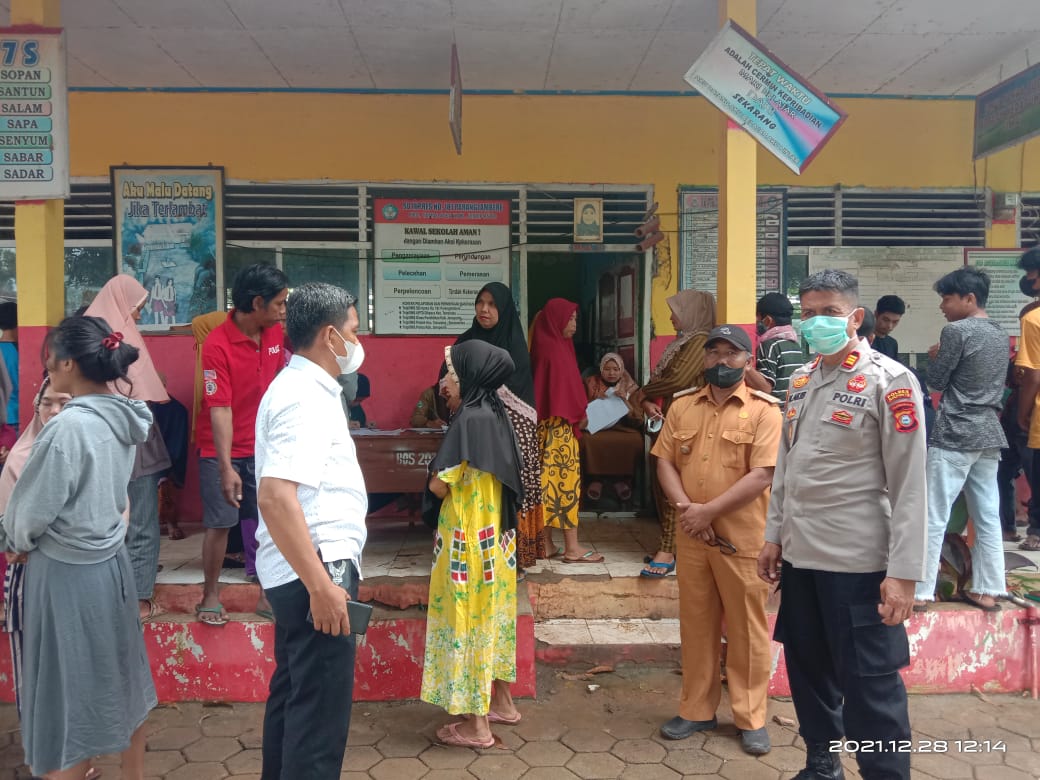 Disela kegiatan pelaksanaan vaksinasi massal ini, Bhabinkamtibas Bripka Muhtar menyampaikan himbauan khamtibmas kepada warga masyarakat dan pelajar untuk selalu disiplin mematuhi protokol kesehatan dengan 5M.