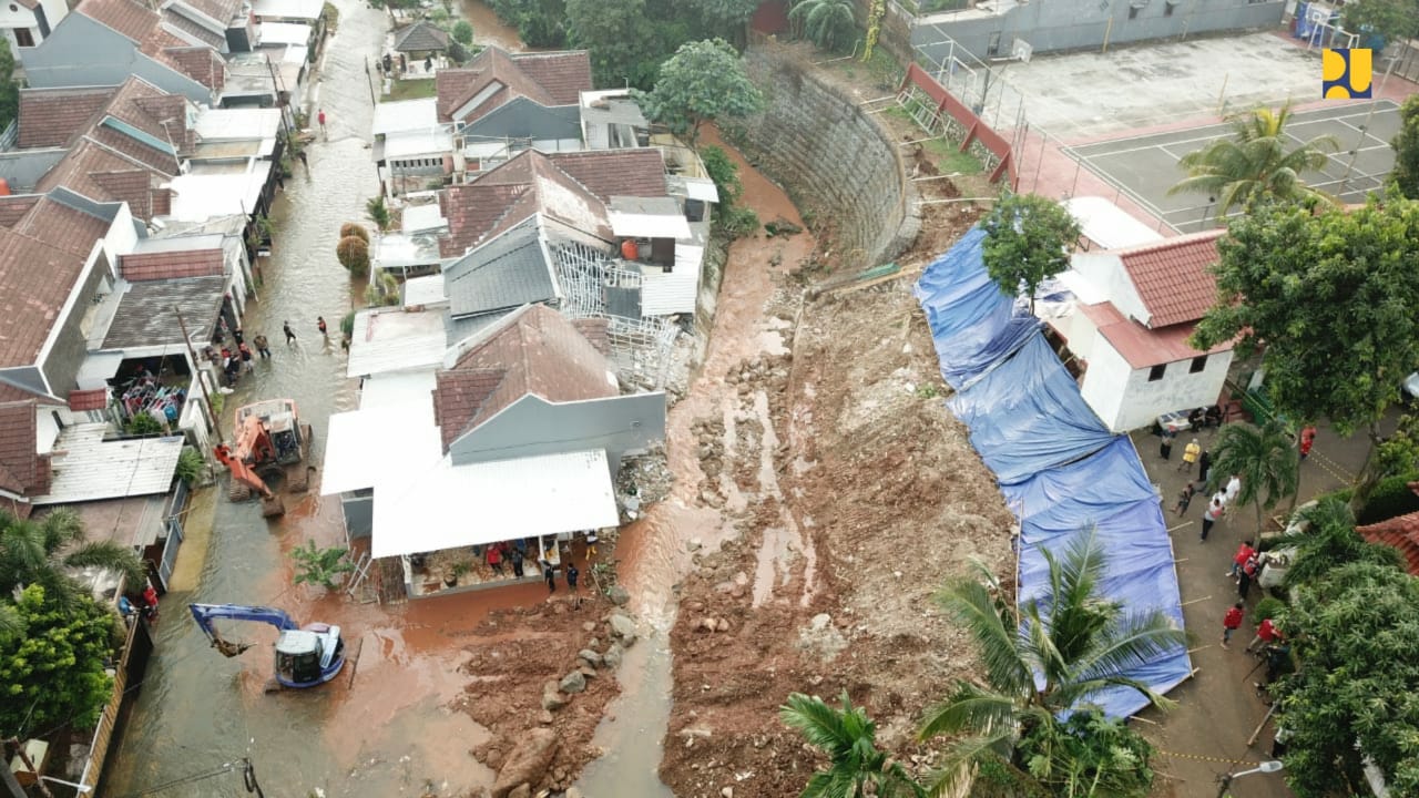 PENJURU.ID | Jakarta – Kementerian Pekerjaan Umum dan Perumahan Rakyat (PUPR) bergerak cepat membantu penanganan longsor di Kali Ciputat, Kota Tangerang Selatan (Tangsel), Banten. Hujan deras yang mengguyur wilayah Tangsel dan sekitarnya pada Jumat (11/6/2021) mengakibatkan tebing di bibir Kali Ciputat yang berada di Perumahan Griya Satwika, Kelurahan Pisangan longsor.