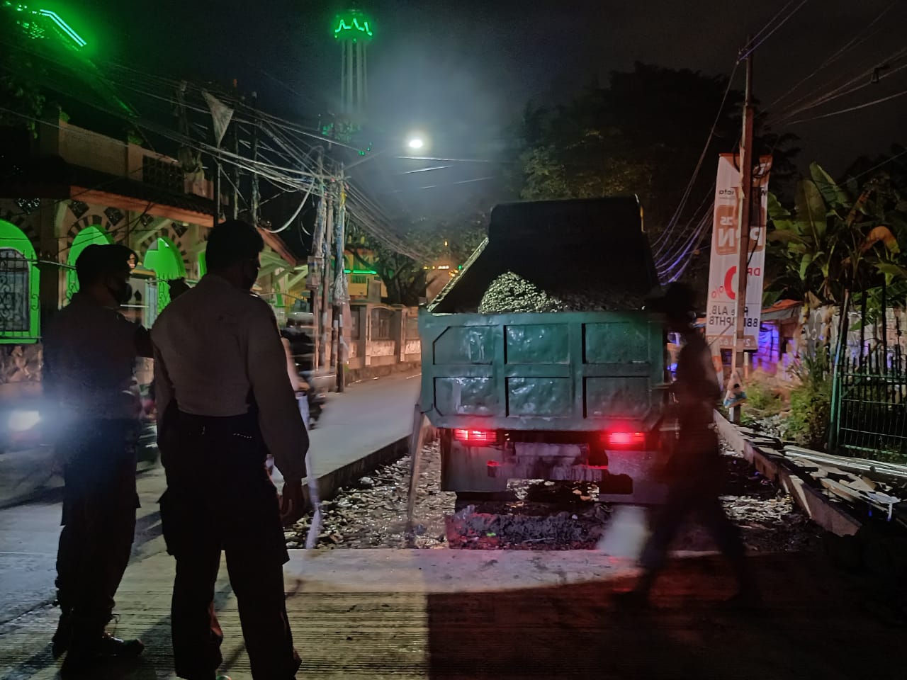 Kegiatan pengecoran jalan tersebut mulai dari pukul 1.00 pagi dini hari Jumat (02/4/2021) pada saat lalu lintas sedang agak sepi.