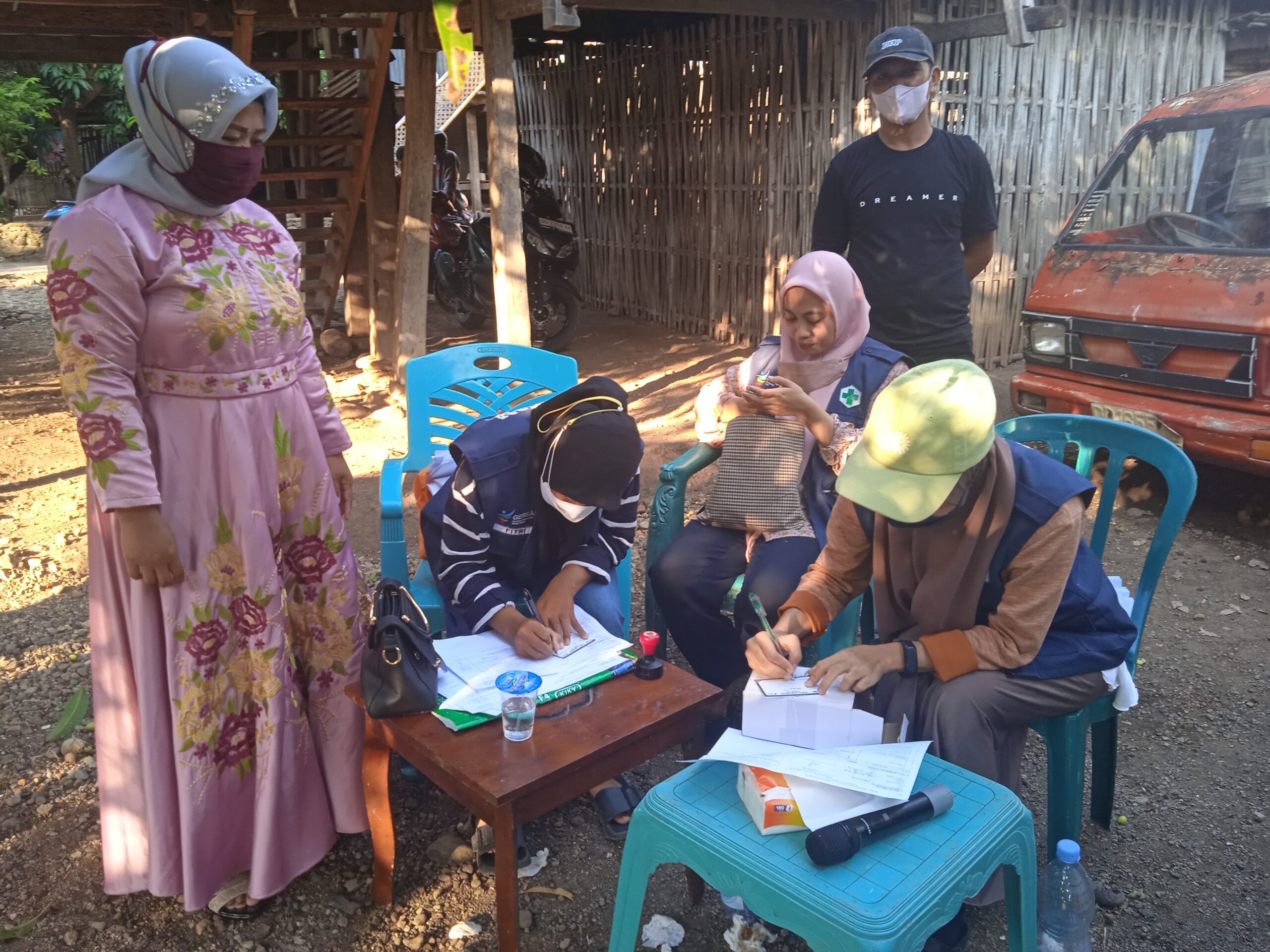 Pemberian Vaksin kepada warga oleh Tim Vaksinator dari UPT Puskesmas Tarowang di Pimpin dr. Cinta bersama tim vaksinator lainnya.