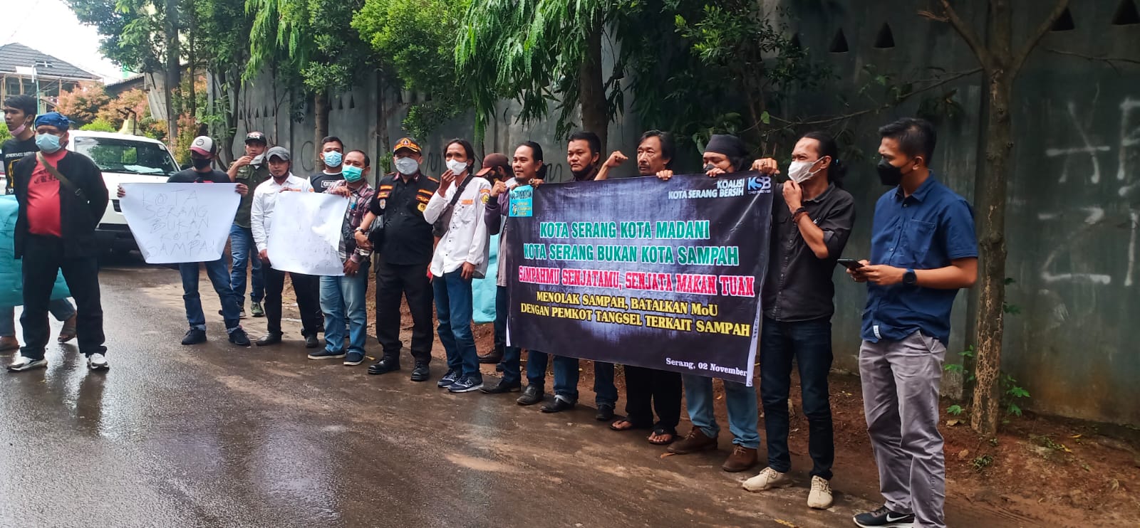 Aksi Koalisi Kota Serang Bersih ini menyikapi tentang MoU pengelolaan sampah antara kota Tangerang Selatan dan kota Serang.