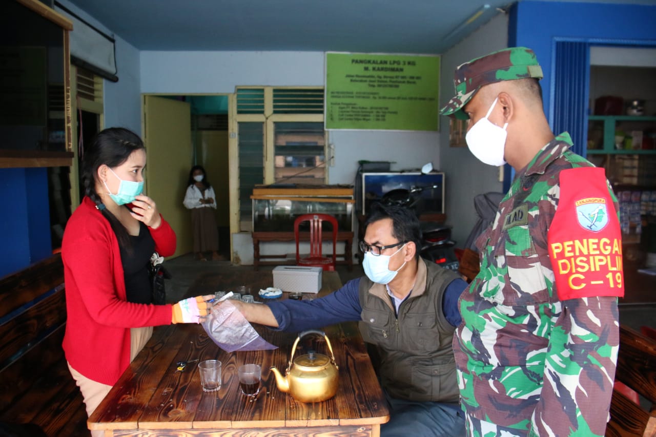 Kegiatan ini dipimpin oleh Kasiopsdim 1207/BS, Mayor Inf Rendra Satrio Wibowo. Selain membagikan masker, dalam kesempatan ini juga dilakukan penyemprotan disinfektan dan pemeriksaan Covid-19 (Tracing) menggunakan Genose kepada warga Sungai Jawi Dalam.