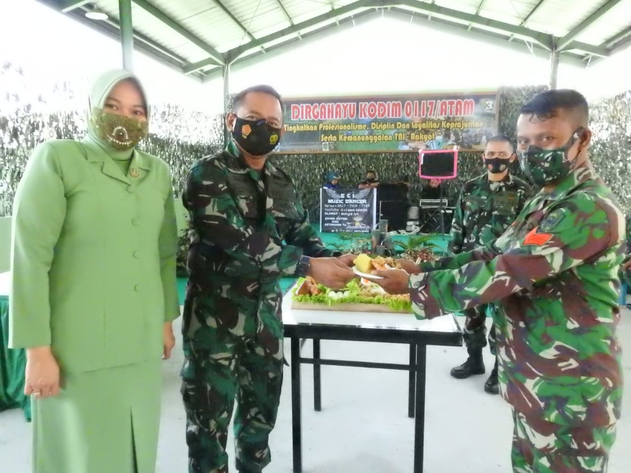 Acara yang digelar sederhana ini dihadiri Dandim 0117/Atam Letkol Cpn Yusuf Adi Puruhita, Kasdim 0117/Atam Mayor Inf Zulkifli, Para Perwira Staf dan Danramil 0117/Atam, Para Prajurit dan PNS Kodim 0117/Atam dan Ketua Persit KCK Cab. XXIV Kodim 0117/Atam beserta pengurus.