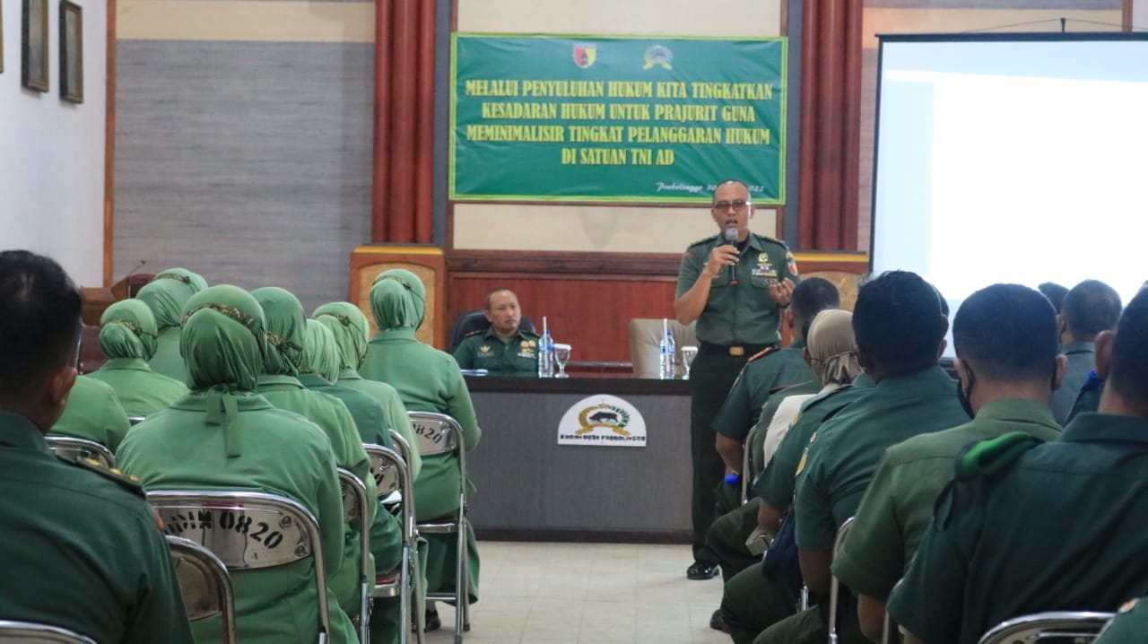 PENJURU.ID | Probolinggo – Ratusan peserta yang terdiri dari para perwira, Persit serta aparatur sipil negara (ASN) di lingkungan Kodim 0820/Probolinggo mengikuti kegiatan penyuluhan hukum yang diprakarsai oleh Kodam V Brawijaya.