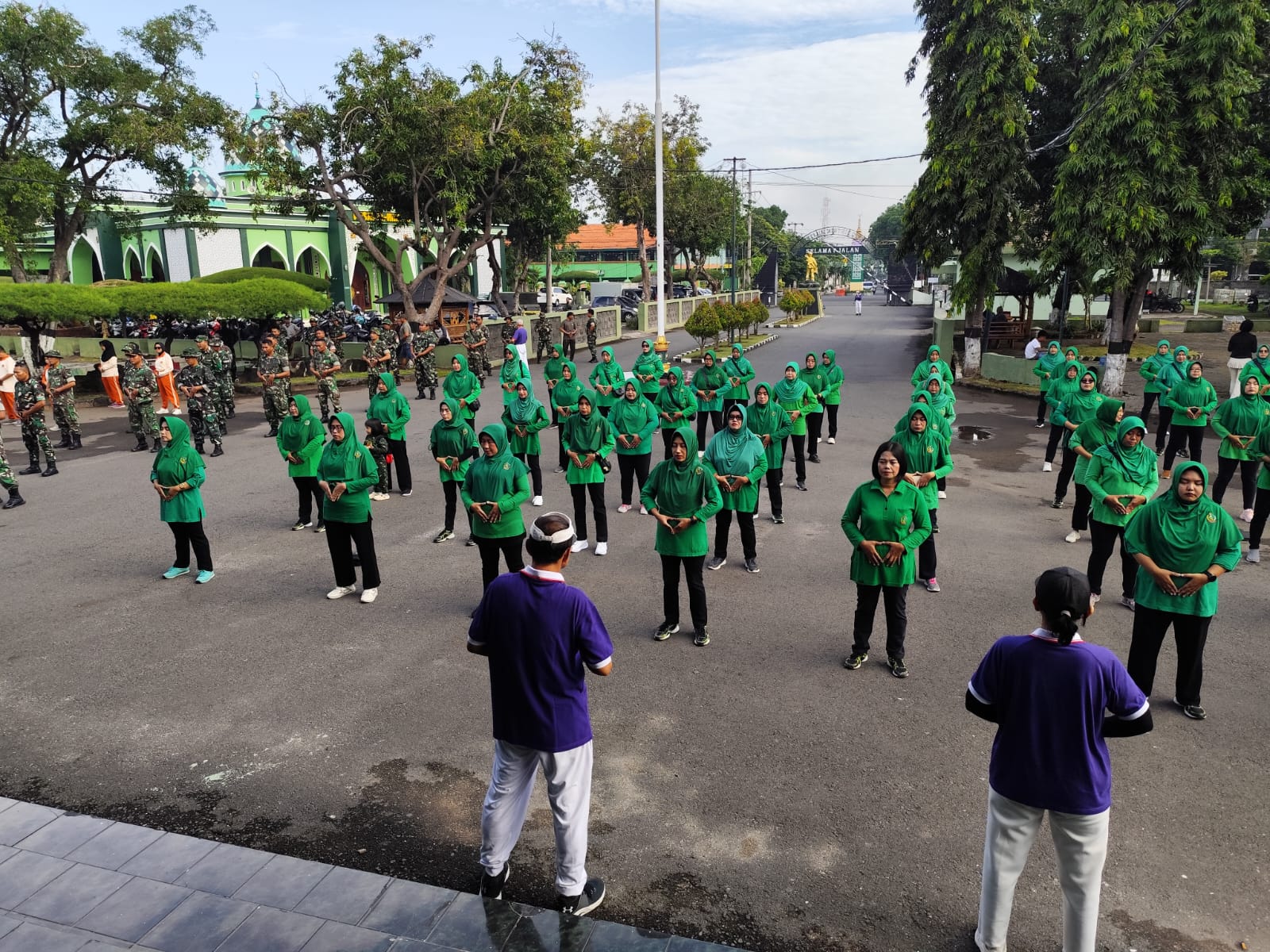 PENJURU.ID | Probolinggo – Bertempat di halaman Makodim 0820/Probolinggo dilaksanakan kegiatan senam bersama yang dikuti oleh anggota Kodim 0820 beserta Persit Kartika Candra Kirana Cabang XXXIV Kodim 0820 Koorcab Rem 083 PD V/ Brawijaya dengan komunitas senam pernafasan cikuung 17 (CK 17) Sasana Utomo Kota Probolinggo, yang kemudian dilanjutkan dengan kegiatan bersih-bersih lingkungan dalam rangka gerakan Indonesia ASRI (Aman, Sehat, Resik, Indah) bersama masyarakat Probolinggo.