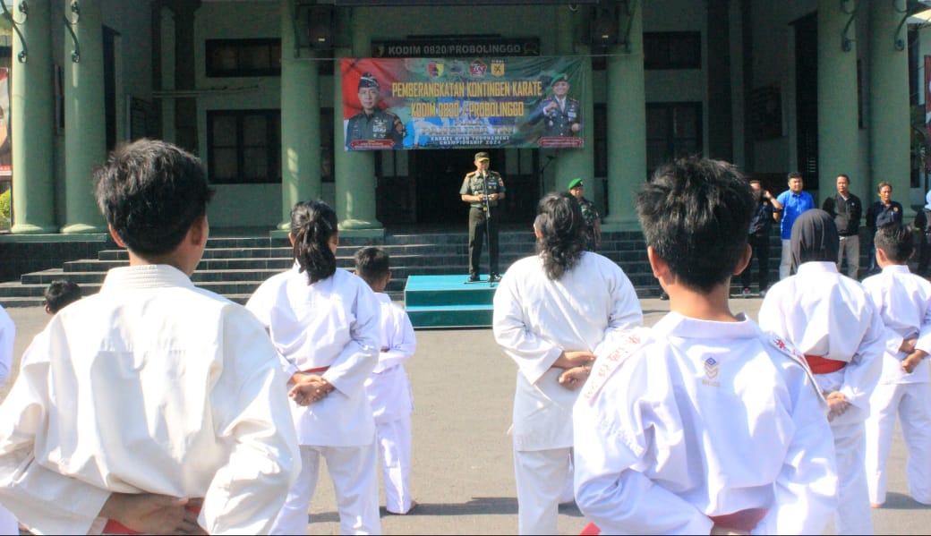 PENJURU.ID | Probolinggo – Komandan Kodim (Dandim) 0820/Probolinggo Letkol Arm Heri Budiasto melepas 17 peserta yang tergabung dalam kontingen karate Kodim 0820/Probolinggo guna mengikuti piala panglima TNI karate open turnamen championship 2024.