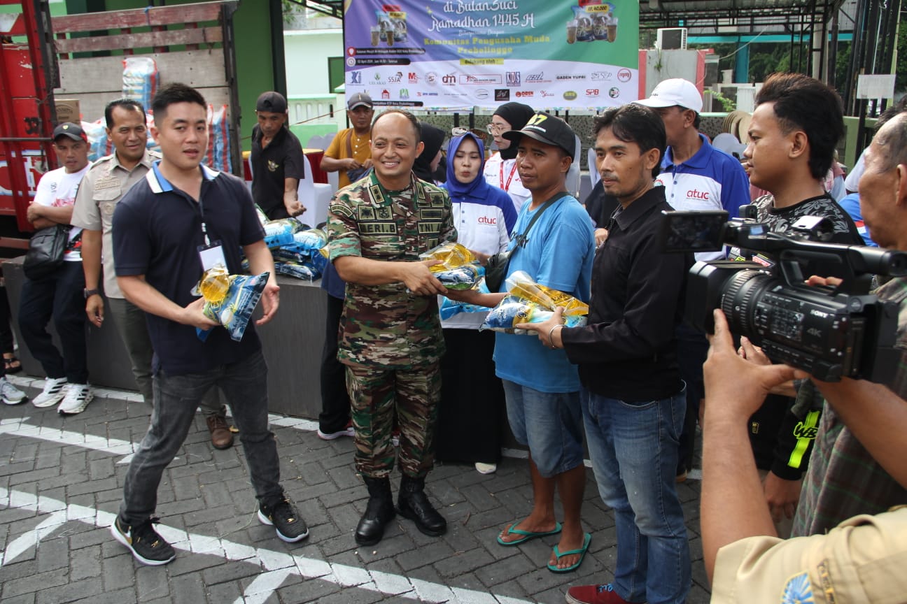 PENJURU.ID | Probolinggo – Kodim 0820/Probolinggo bersinergi dengan komunitas pengusaha muda serta pihak perbankan wilayah setempat melaksanakan kegiatan bazar murah dan pembagian sembako kepada masyarakat kurang mampu.