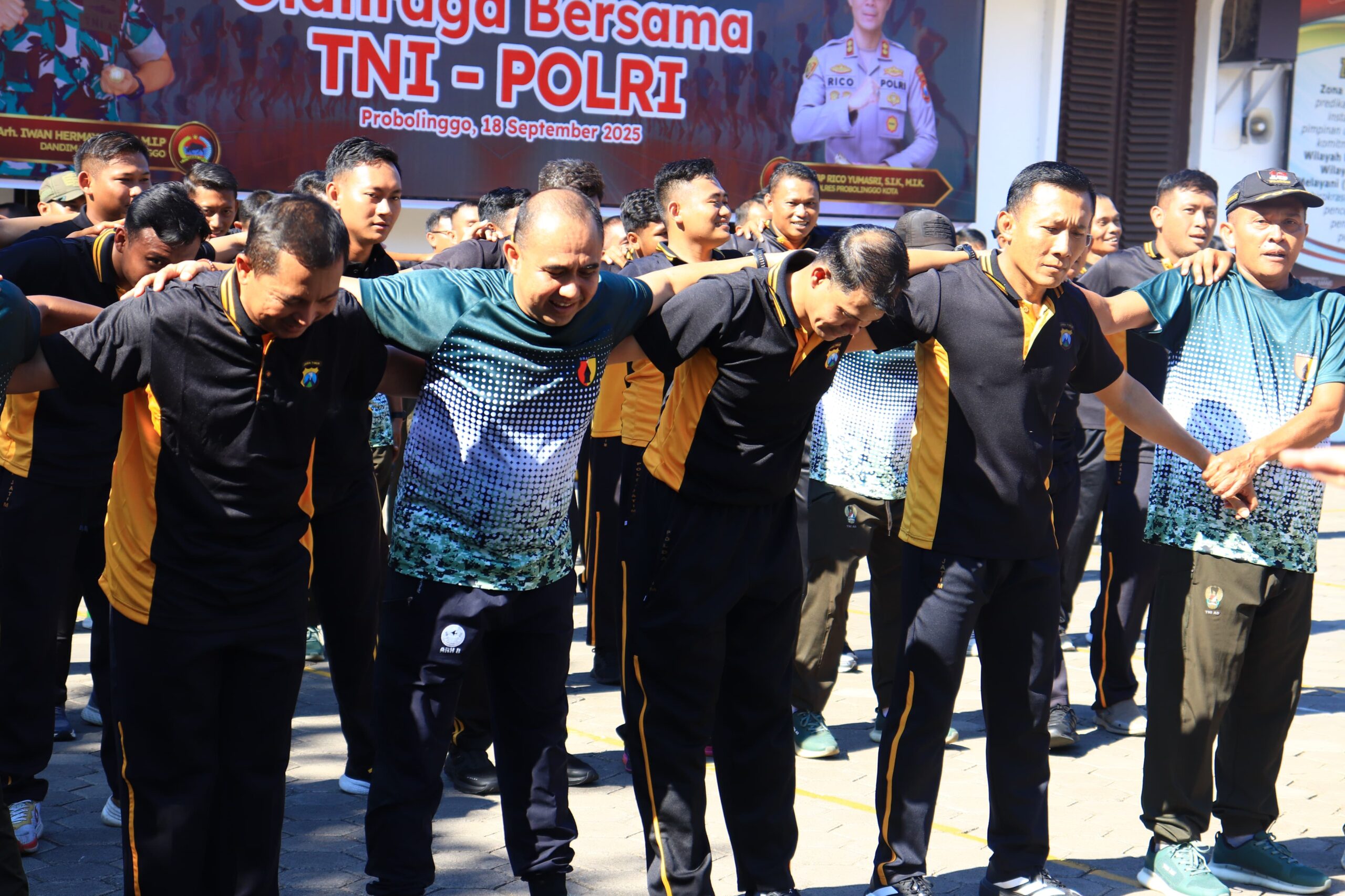 PENJURU.ID | Probolinggo – Dalam rangka mempererat sinergi dan soliditas, TNI dan Polri di Kota Probolinggo menggelar kegiatan olahraga bersama yang berlangsung di Lapangan Apel Polres Probolinggo Kota, Jl. Dr. Moch Saleh No.34, Sukabumi, Kecamatan Mayangan. Kegiatan ini diikuti sekitar 100 personel gabungan TNI–Polri.