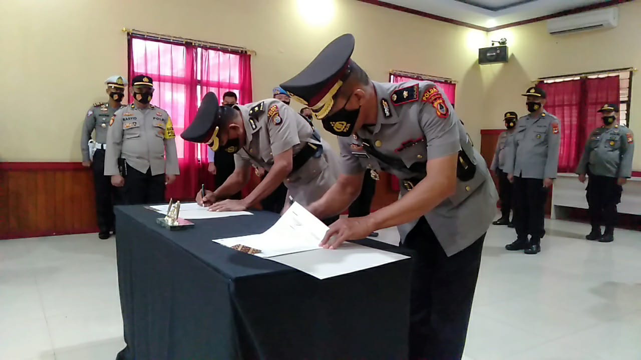 PENJURU.ID | Gowa – Perwira Polres Gowa melaksanakan upacara serah terima jabatan di Aula Endra Dharmalaksana, Selasa (29/12/2020).
