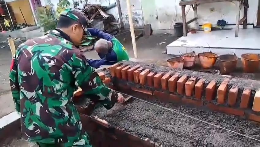 PENJURU.ID | Probolinggo – Koramil 0820/20 Banyuanyar kembali melaksanakan komunikasi sosial (Komsos) dengan ikut ambil bagian dalam kegiatan kerja bakti pembangunan rumah milik salah satu warga di Desa Gunung Geni, Kecamatan Banyuanyar, Kabupaten Probolinggo, Jumat (20/6).