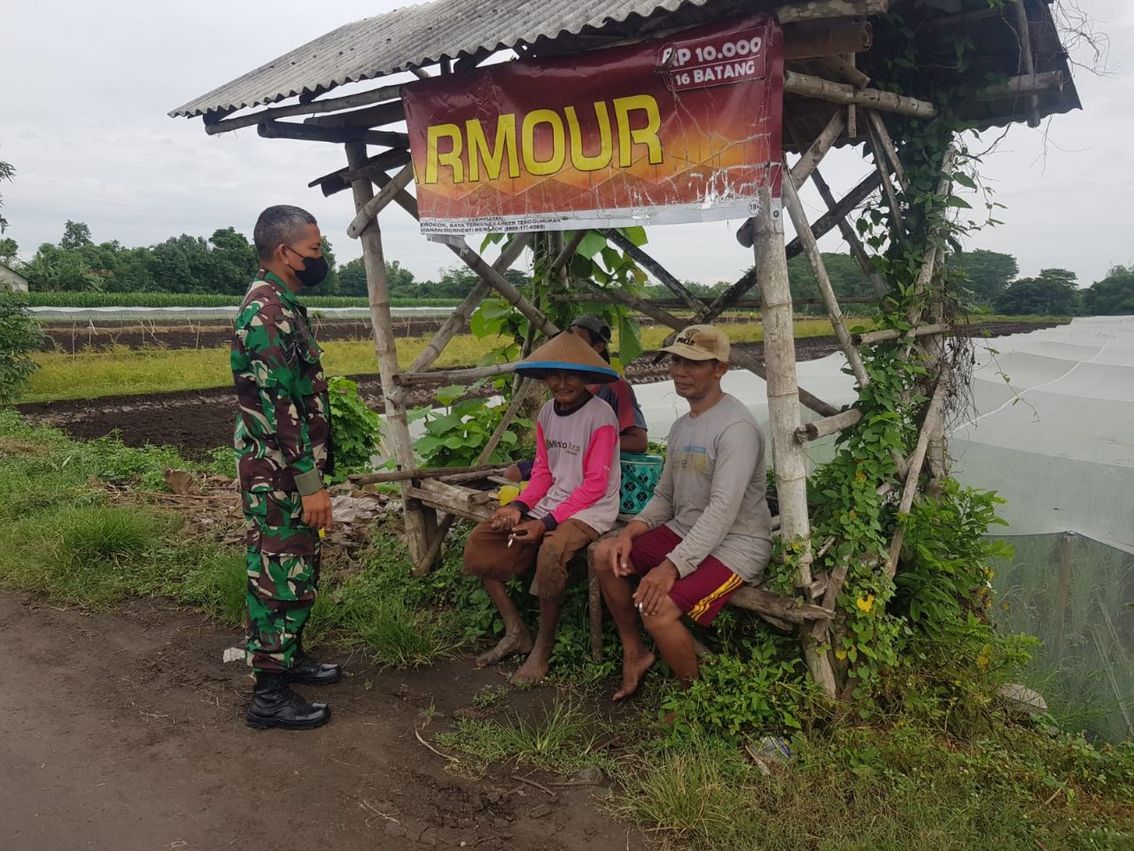 PENJURU.ID | Probolinggo – Serka Salim anggota Koramil 0820/22 Dringu melakukan komunikasi sosial (komsos) di Desa Sumberagung Kecamatan Dringu Kabupaten Probolinggo, Sasaran dalam pelaksanaan komunikasi sosial kali ini yakni para petani yang ada di wilayah tersebut.