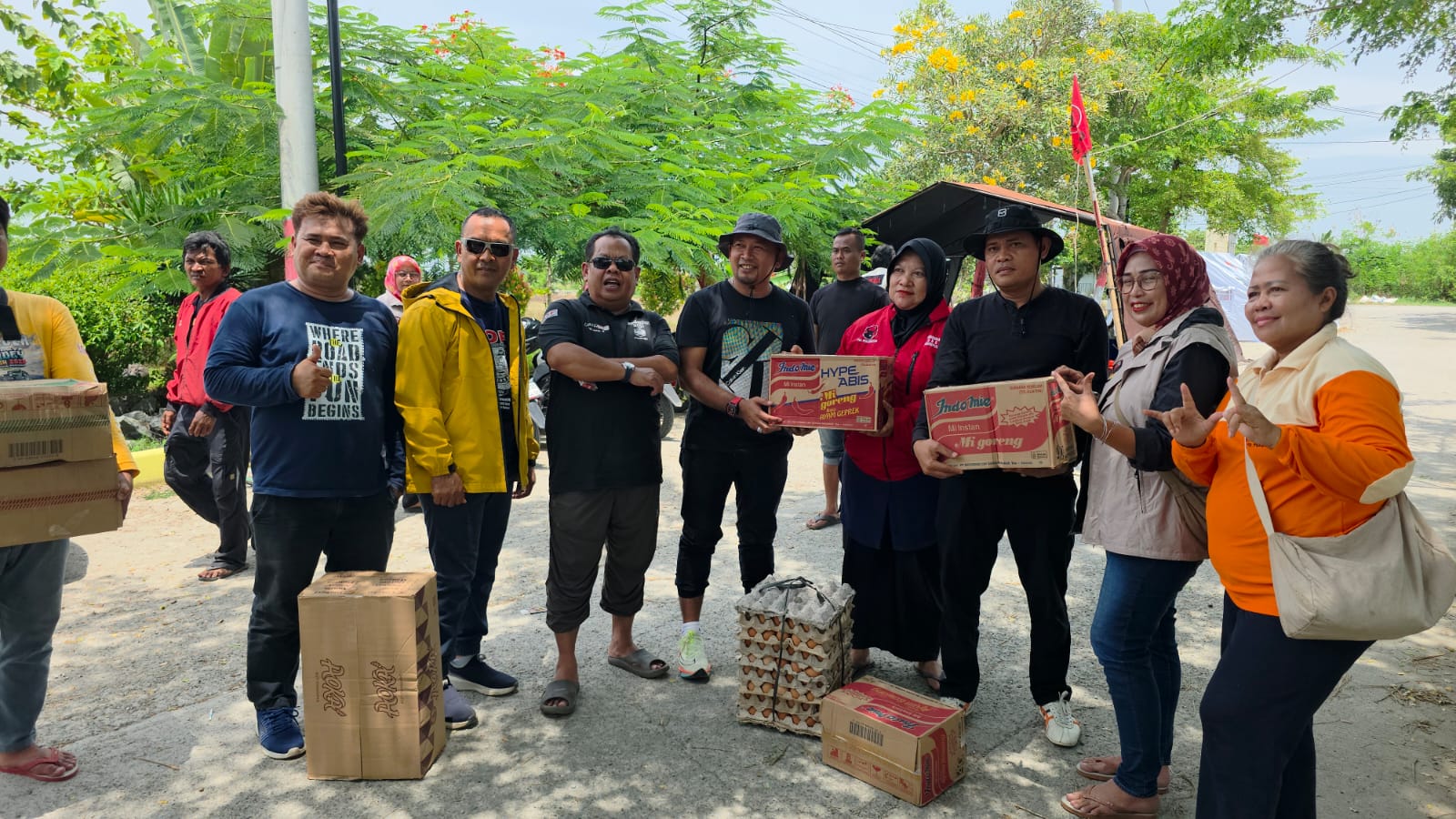 Pemberian bantuan tersebut sebagai bentuk kepedulian terhadap sesama. Bantuan yang diberikan berupa paket sembako, yaitu, air mineral, mie instan dan telur, dan diberikan langsung kepada warga yang masih bertahan di lokasi terdampak.