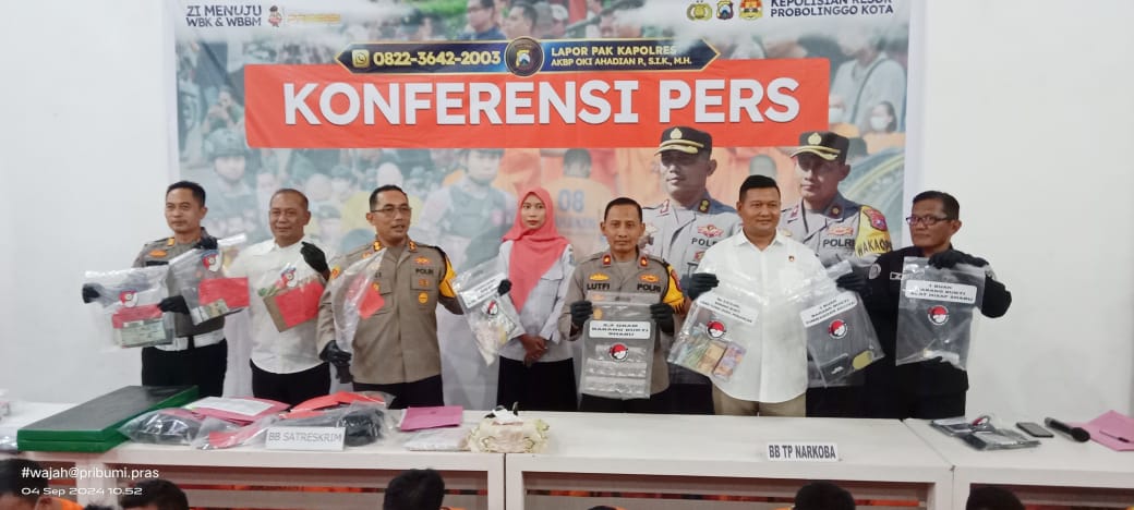 Konferense tersebut di pimpin langsung oleh Kapolres Probolinggo Kota AKBP Oki Ahadian Purwono, S.I.K., M.H., bersama Kasat Reskrim AKP Didik Riyanto, S.H., M.H., Kasat Narkoba Iptu IGP Wiranata, S.H., dan Kasi Humas Iptu Zainullah, S.H.