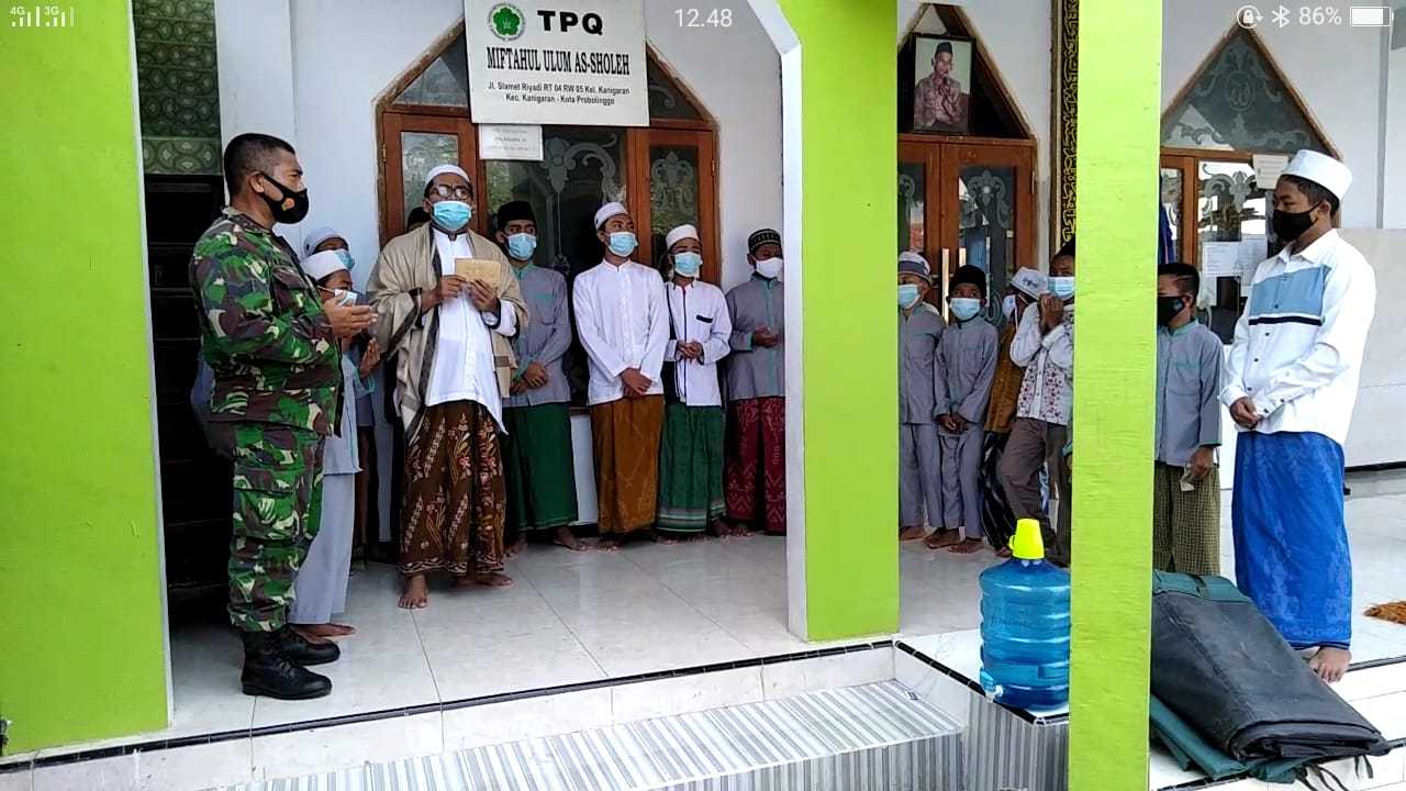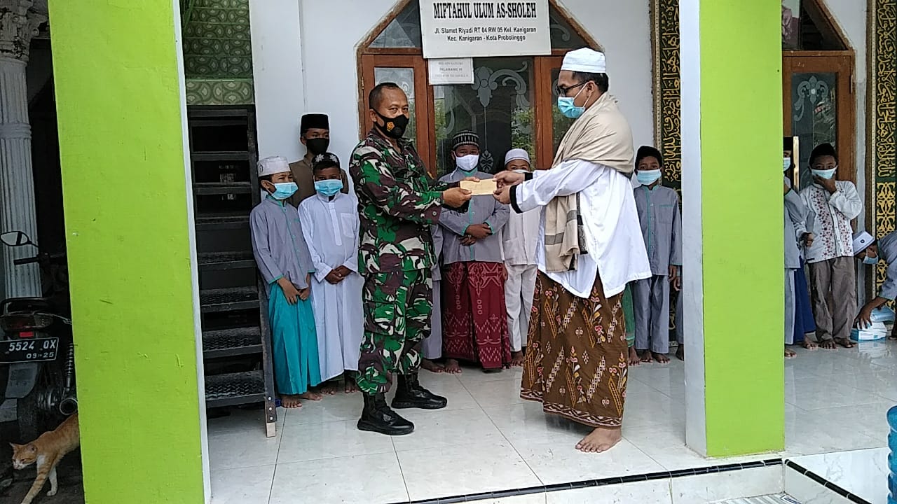“Bulan suci Ramadhan ini merupakan bulan yang penuh berkah, kami berinisiatif bersama anggota Koramil 0820/01 Probolinggo, menyisihkan sebagian uang, kita kumpulkan lalu kita serahkan kepada pihak panitia pelaksana perbaikan pembangunan TPQ Musholla Miftahul Ulum, As Sholeh, Kh Muhammad Athoillah As’ad, dengan berpedoman pada Prokes, penanganan Covid 19 berupa PPKM Mikro dalam rangka percepatan penanganan Covid 19, menuju adaptasi kebiasaan baru di wilayah Kota Probolinggo, tegas,” Danramil 0820/01 Kanigaran, Kapten. Cpl. Eko Saputro.