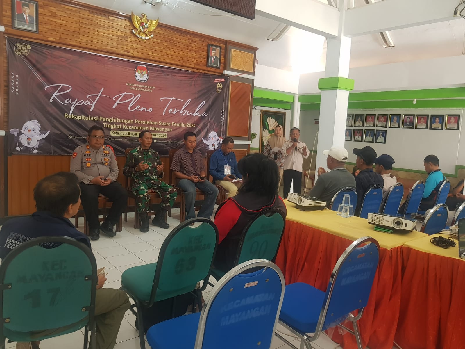 PENJURU.ID | Probolinggo – Koramil 0820/01 Kanigaran menghadiri rapat pleno terbuka rekapitulasi penghitungan perolehan suara dalam pemilihan umum (Pemilu) tingkat kecamatan di aula kecamatan Mayangan Kota Probolinggo, Minggu (18/2).