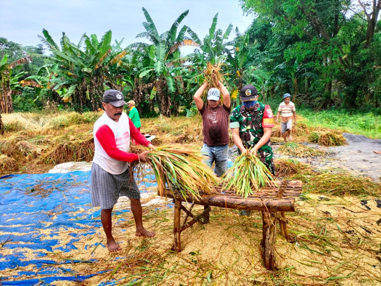 Serka Abdul Hasan anggota Koramil 0820/07 Wonomerto, menyampaikan bahwa untuk saat ini pihaknya membantu masyarakat yang sedang melaksanakan panen padi.