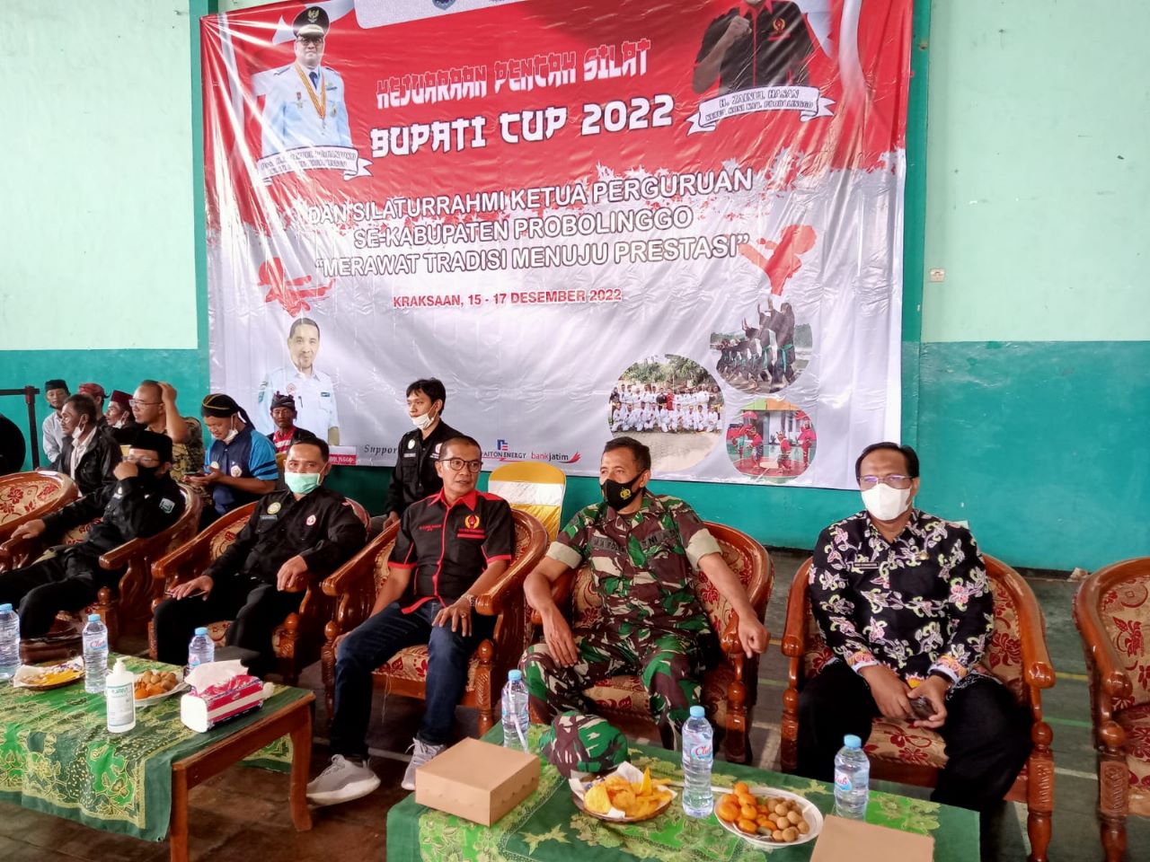 PENJURU.ID | Probolinggo – Bati tuud Koramil 0820/12 Kraksaan Peltu A. R. Marsim mewakili Danramil menghadiri acara Pembukaan Kejuaraan Pencak Silat Bupati Cup Tahun 2022 Se Kabupaten Probolinggo.dengan mengusung tema ” Merawat Tradisi Menuju Prestasi” yang dihadiri oleh sekitar 200 orang. bertempat di Gedung Olahraga (GOR) Sasana Krida Kota Kraksaan Jln Panglima Sudirman Patokan Kecamatan Kraksaan Kabupaten Probolinggo. Jumat (16/12/2022)