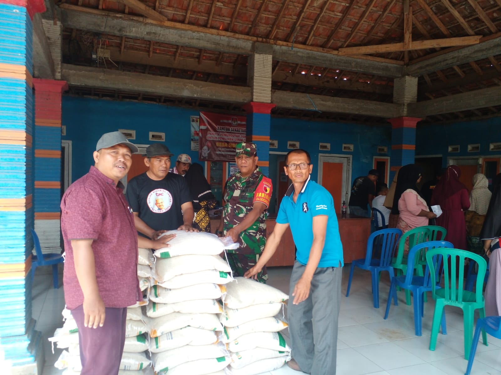 PENJURU.ID | Probolinggo – Koramil 0820/18 Kotaanyar mengawal dan mengamankan pelaksanaan penyaluran bantuan pangan tahap II tahun 2023 di Desa Sidomulyo Kecamatan Kotaanyar Kabupaten Probolinggo.