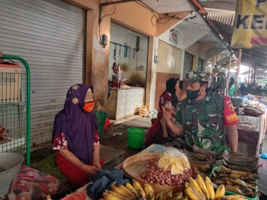 Seperti yang dilakukan oleh Anggota Koramil 0820/22 Dringu, Sertu. Kusrianto yang memberikan Edukasi di pasar tradisional dan pasar Bawangan yang berada di kecamatan Dringu kabupaten Probolinggo, Jumat (10/12/2021)