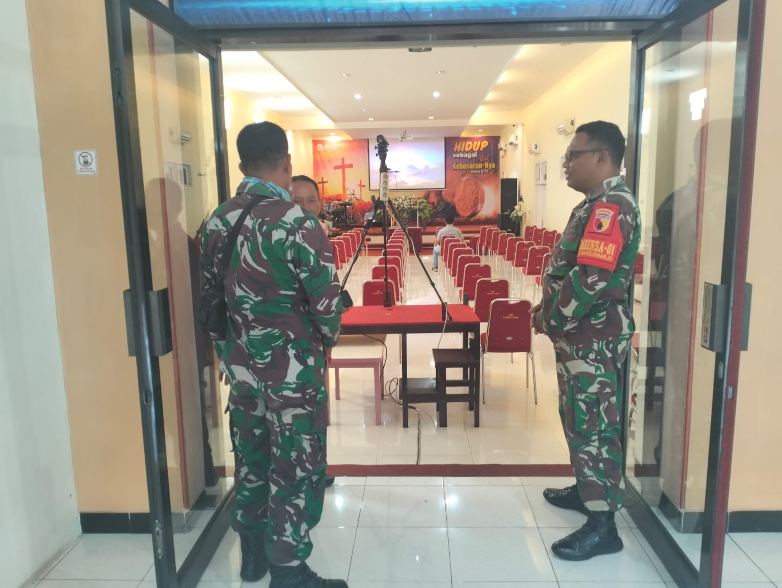 PENJURU.ID | Probolinggo – Kodim 0820/Probolinggo melalui Koramil jajaran melakukan pengawalan dan pengamanan jalannya kegiatan keagamaan umat Kristen yang melaksanakan ibadah hari Minggu di Gereja Bethel Indonesia ( GBI ) Pondok Daud di wilayah Kelurahan Mangunharjo, Kota Probolinggo.
