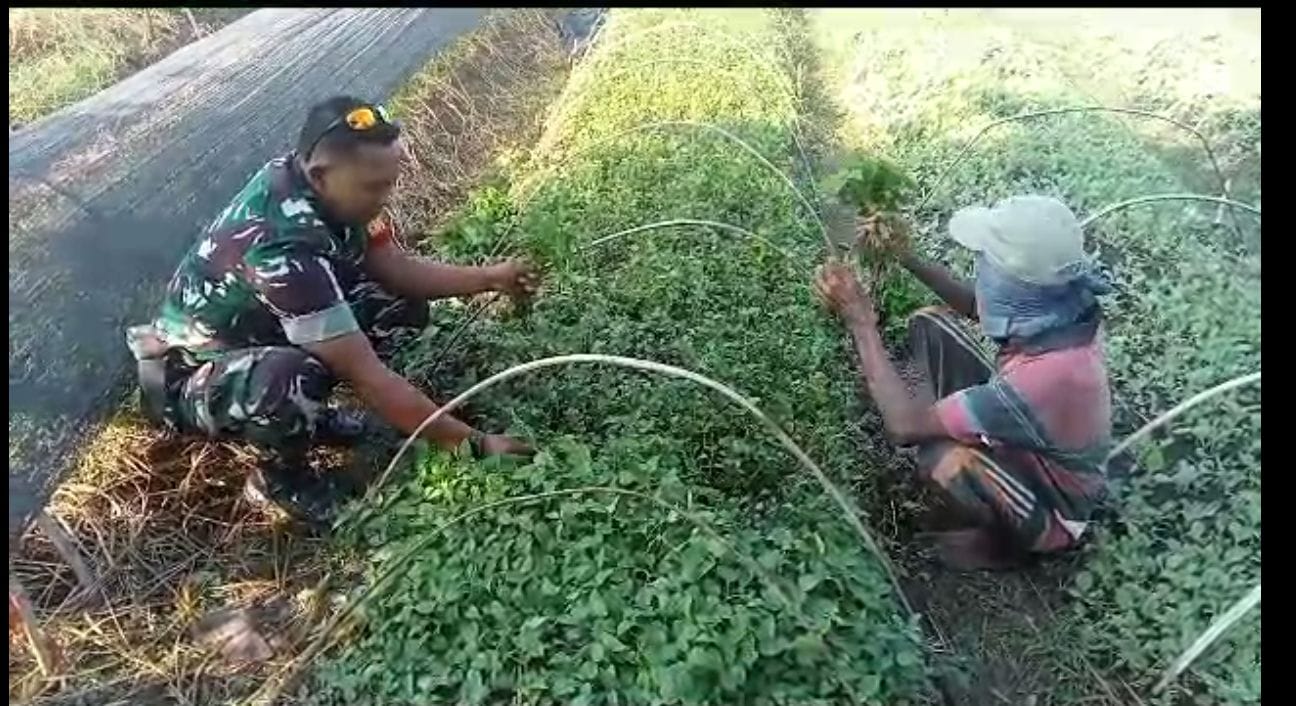 PENJURU.ID | Probolinggo – Kopda Dedi anggota Koramil 0820/13 Krejengan melakukan komunikasi sosial (komsos) dengan melakukan pendampingan kepada petani tembakau di Desa Patemon Kecamatan Krejengan Kabupaten Probolinggo.