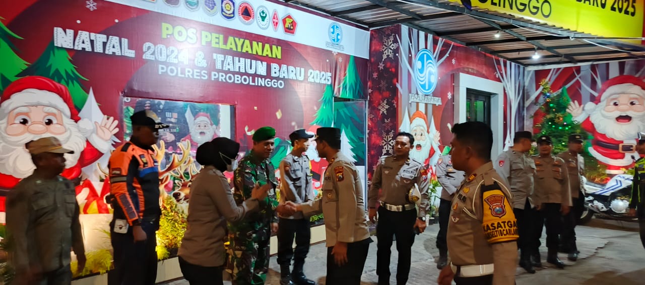PENJURU.ID | Probolinggo – Kodim 0820/Probolinggo melalui Koramil jajaran bersama sejumlah pihak ikut ambil bagian dalam pengamanan di pos pelayanan Natal 2024 dan tahun baru 2025 di pos pelayanan exit tol Leces, Kabupaten Probolinggo, Senin (30/12).