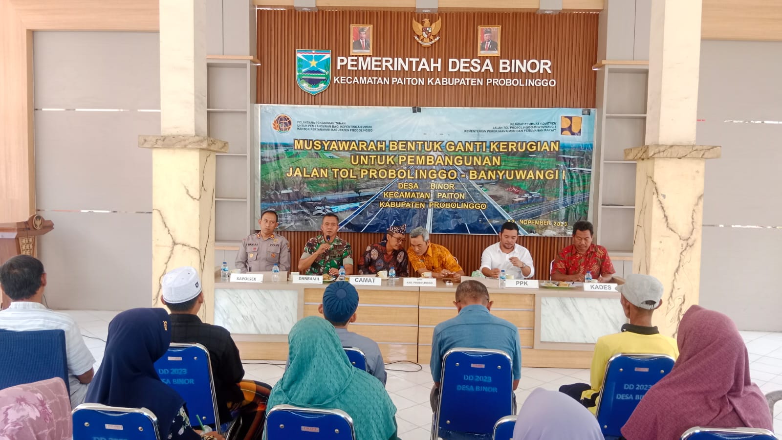 PENJURU.ID | Probolinggo – Koramil 0820/16 Paiton mengawal dan mendampingi kegiatan musyawarah desa terkait ganti rugi dampak pembangunan jalan tol di kantor Desa Bhinor Kecamatan Paiton Kabupaten Probolinggo.