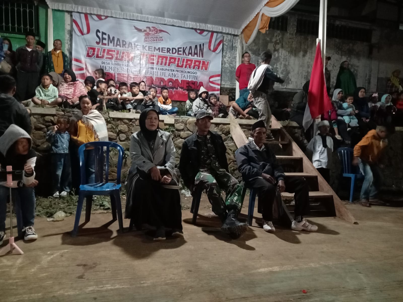 PENJURU.ID | Probolinggo – Koramil 0820/11 Sumber mengawal dan mengamankan jalannya gelaran pentas seni budaya dalam rangka memperingati hari ulang tahun Republik Indonesia ke 79 tahun 2024 di Dusun Tempuran, Desa Sumber, Kecamatan Sumber, Kabupaten Probolinggo, Senin (2/9).