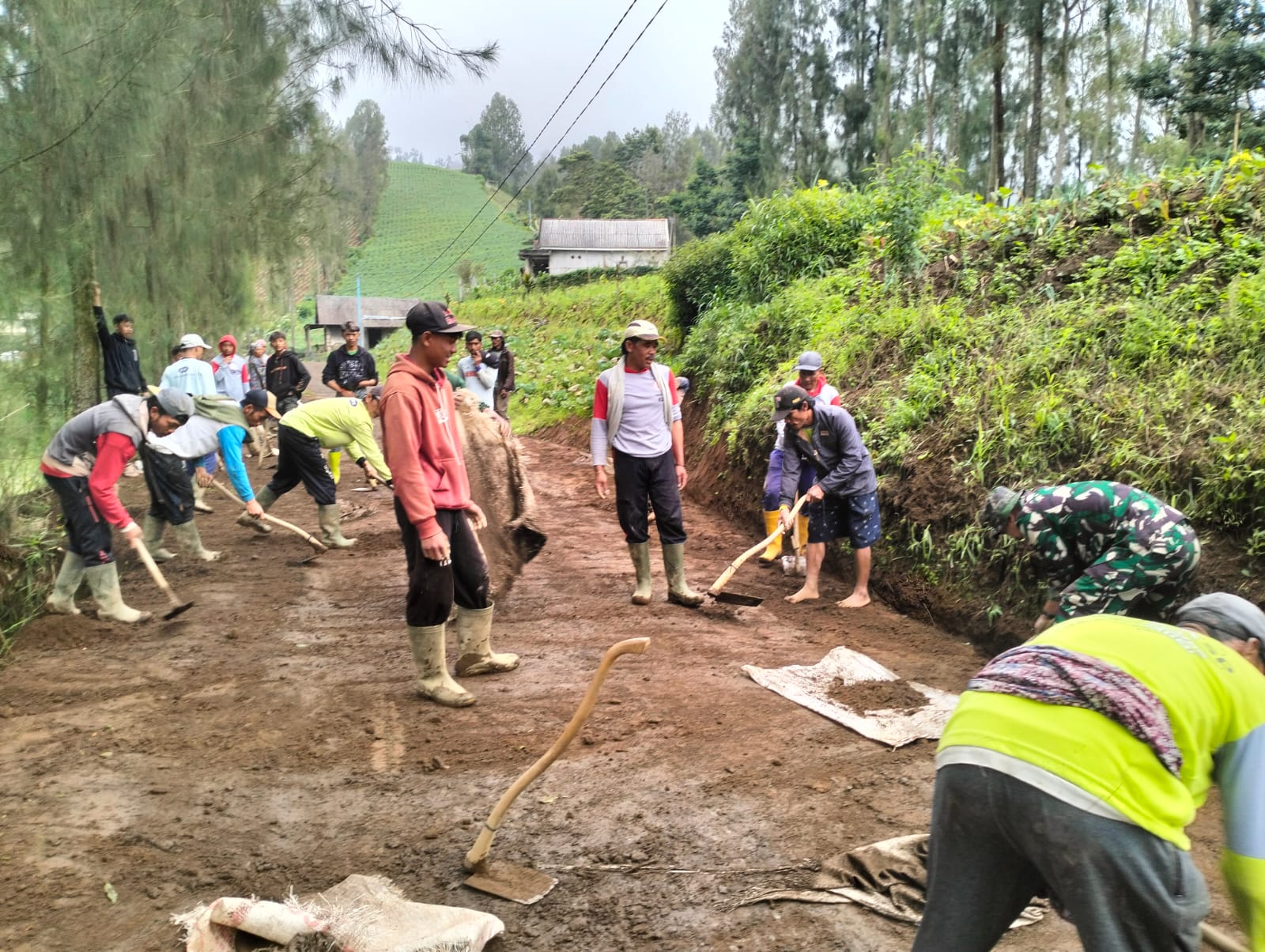 PENJURU.ID | Probolinggo – Koramil 0820/11 Sumber bersama masyarakat Dusun Wonosejo, Desa Wonokerso, Kecamatan Sumber, Kabupaten Probolinggo mempelopori pelaksanaan kerja bakti membersihkan jalan desa.