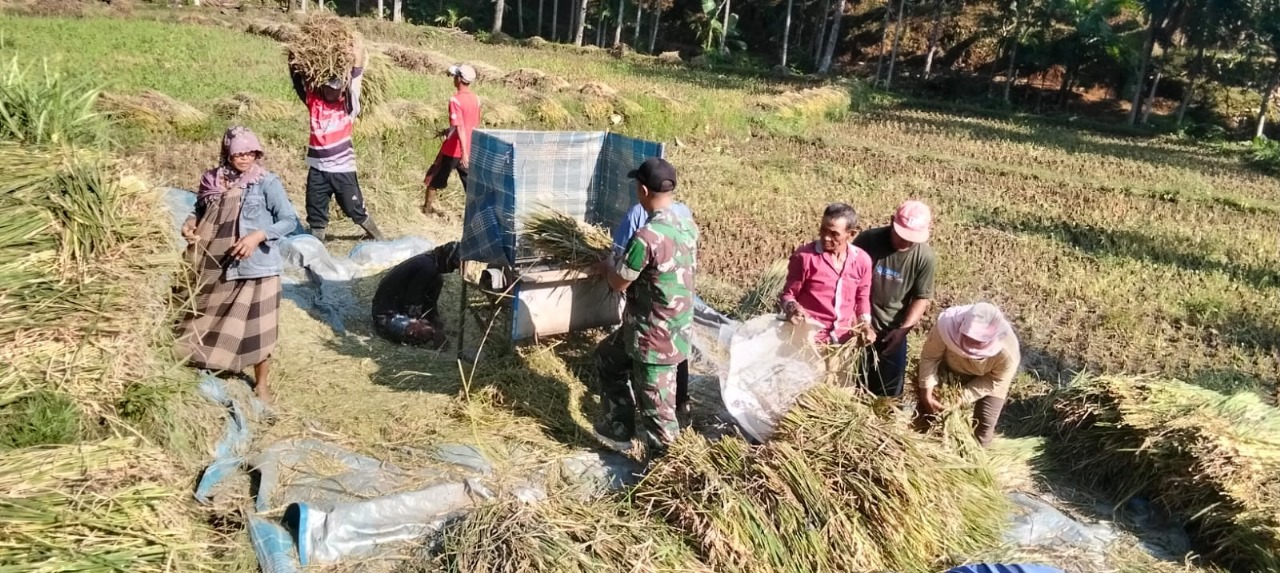 Pada hari Rabu, 25 Juli 2025, Babinsa Koramil 0820-09/Lumbang, Koptu Dadang Wibi, melaksanakan kegiatan pendampingan panen padi milik Bapak Susi, seorang petani setempat.
