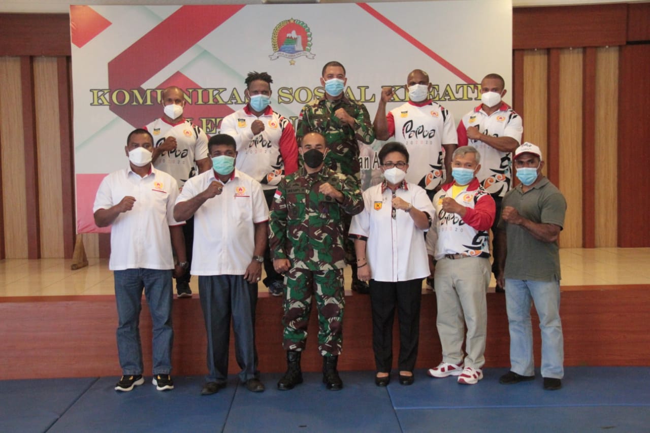 PENJURU.ID | Papua – Korem172/Praja Wira Yakti (PWY) menggelar komunikasi sosial (Komsos) kreatif dengan menghadirkan para atlet Pekan Olah Raga Nasional (PON) ke-XX 2021 dari beberapa cabang olah raga di antaranya binaraga, karate dan kempo serta pencak silat.