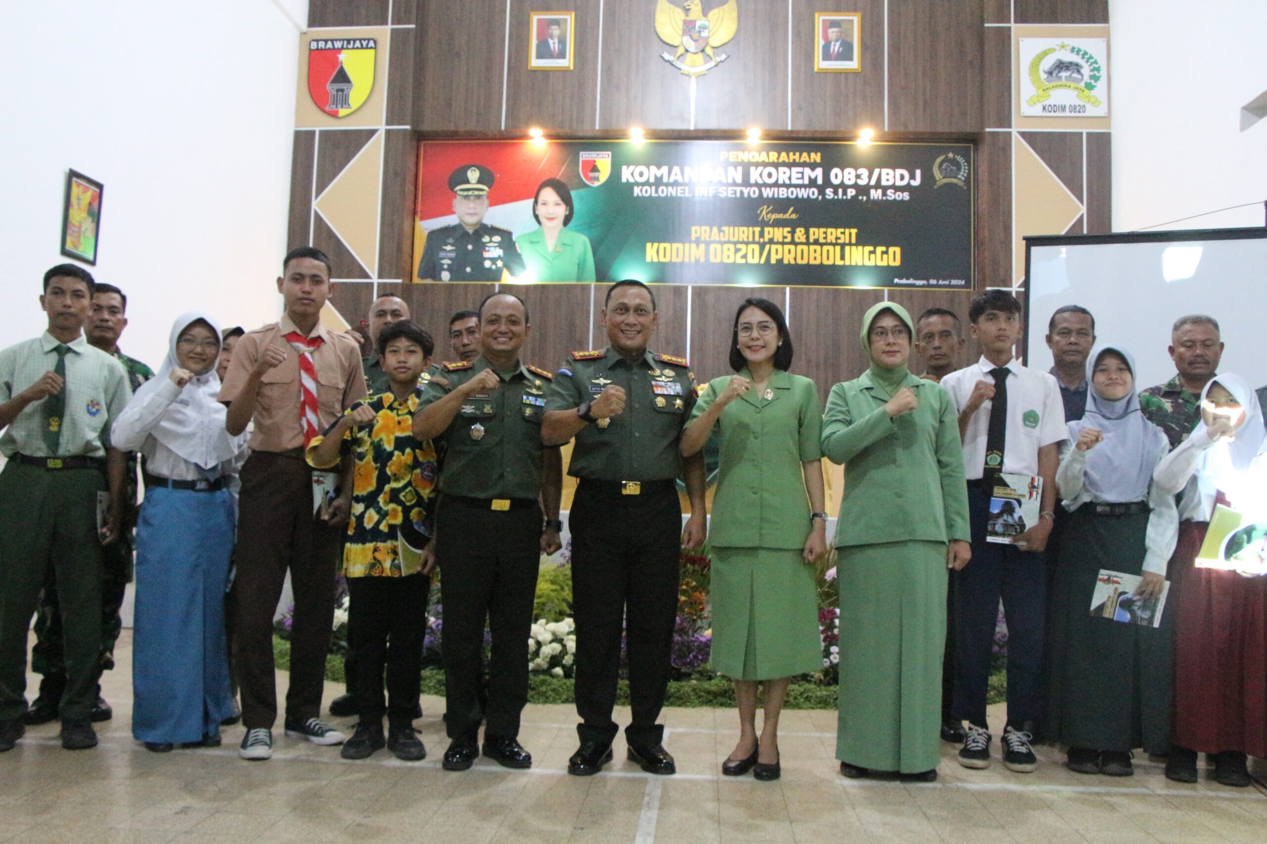 PENJURU.ID | Probolinggo – Danrem 083/BDJ Kolonel Inf Setyo Wibowo melakukan kunjungan kerja di kodim 0820/Probolinggo, kedatangan perwira menengah ini pun disambut langsung oleh Dandim 0820/Probolinggo Letkol Arm Heri Budiasto bersama jajaran forum kordinasi pimpinan daerah baik kota maupun kabupaten.