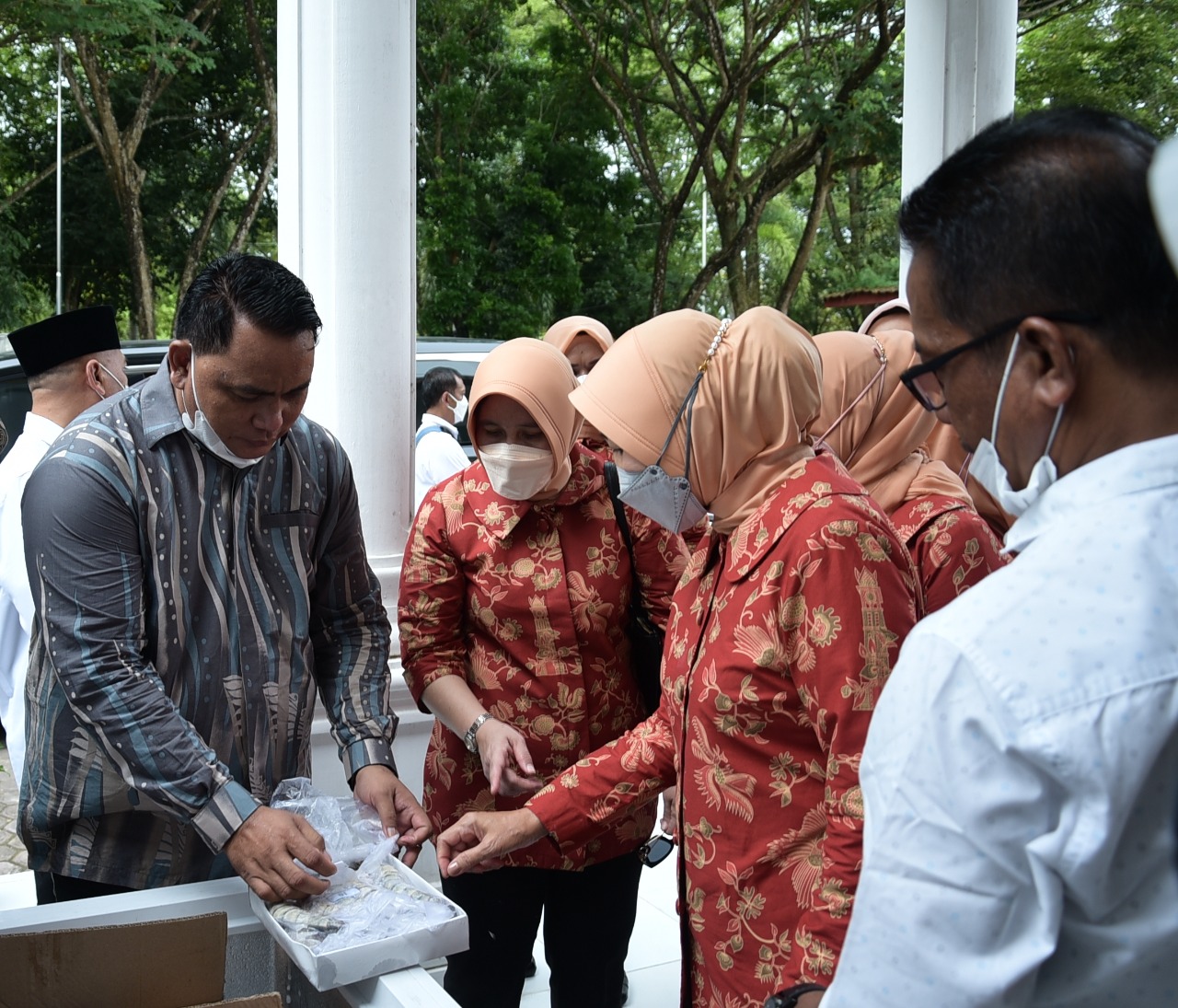 PENJURU.ID | Aceh Tamiang – Beranjak dari Pendopo Bupati, tujuan pertama kunjungan kerja isteri Menteri Kelautan dan Perikanan yang juga pengarah DWP KKP, Ernawati Trenggono, di Aceh Tamiang adalah Galeri Dekranasda. Dalam pada itu, kunjungan Ernawati beserta rombongan disambut oleh Ketua Dekranasda, Dr. Rita Syntia Mursil dan para pengurus teras Dekranasda setempat, Rabu (16/7/22) siang kemarin.