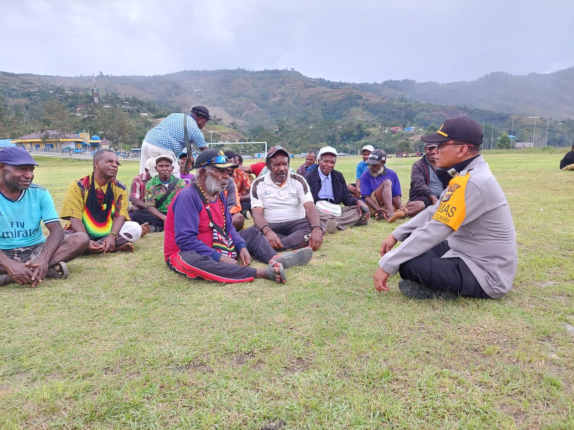 PENJURU.ID | Karubaga – Kasat Binmas Polres Tolikara Iptu Widada bersama Anggota melaksanakan sambangi masyarakat dan memberikan himbauan dan sosialisasi. Minggu (30/05).