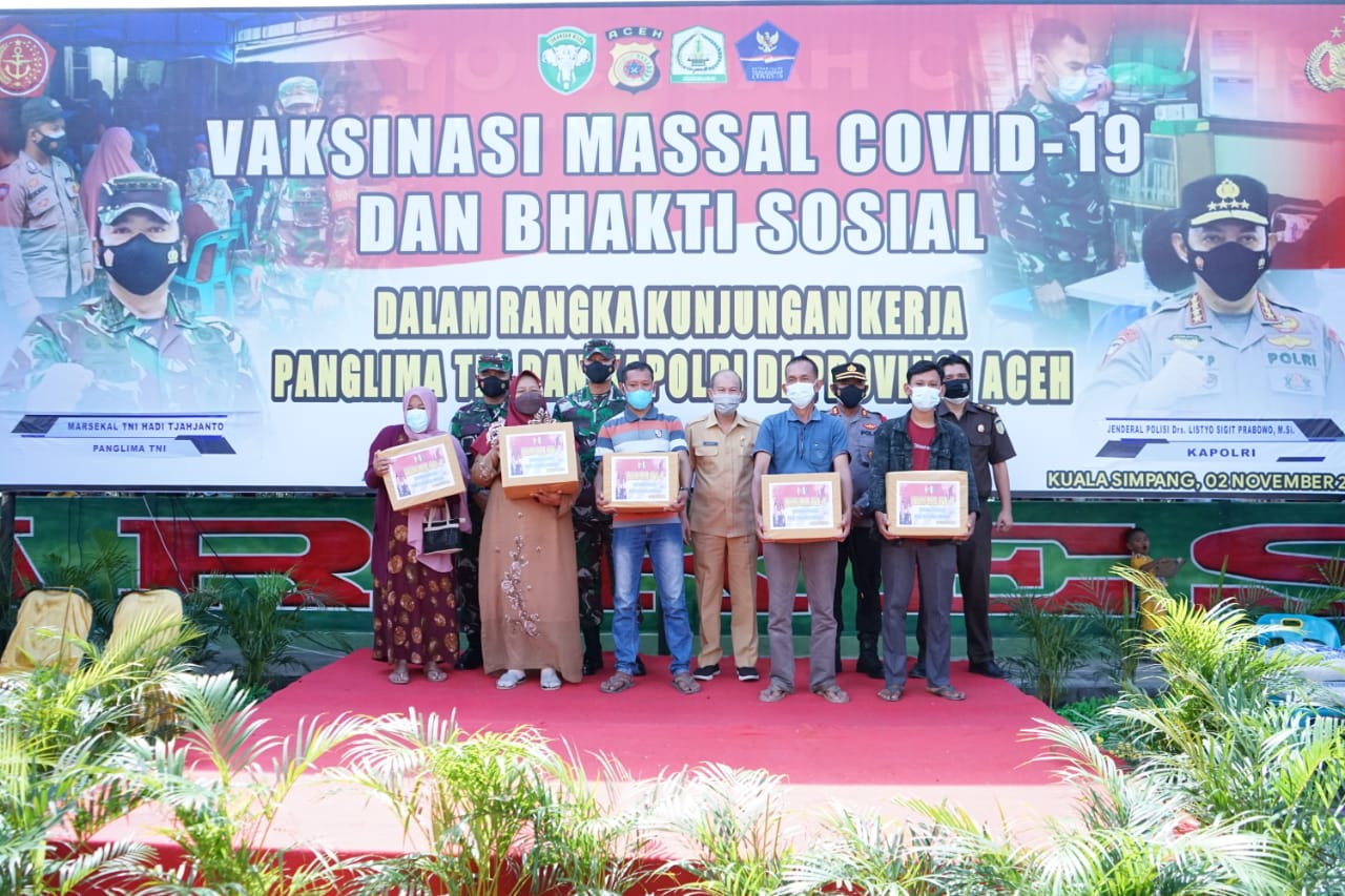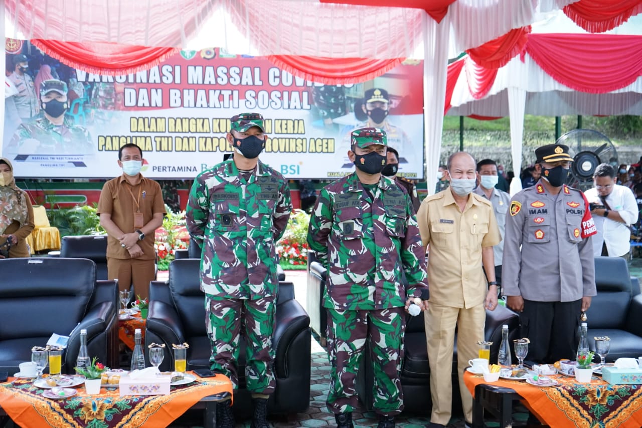 Kegiatan yang diselenggarakan Kodim 0117/Aceh Tamiang merupakan rangkaian kunjungan kerja Panglima TNI dan Kapolri di Provinsi Aceh. Secara virtual melalui video conference, Panglima TNI Marsekal Hadi Tjahjanto dan Kapolri Jenderal Polisi Listyo Sigit Prabowo yang berada di Kota Banda Aceh meninjau pelaksanaan vaksinasi massal yang berlangsung di 23 Kabupaten/Kota dalam Provinsi Aceh.