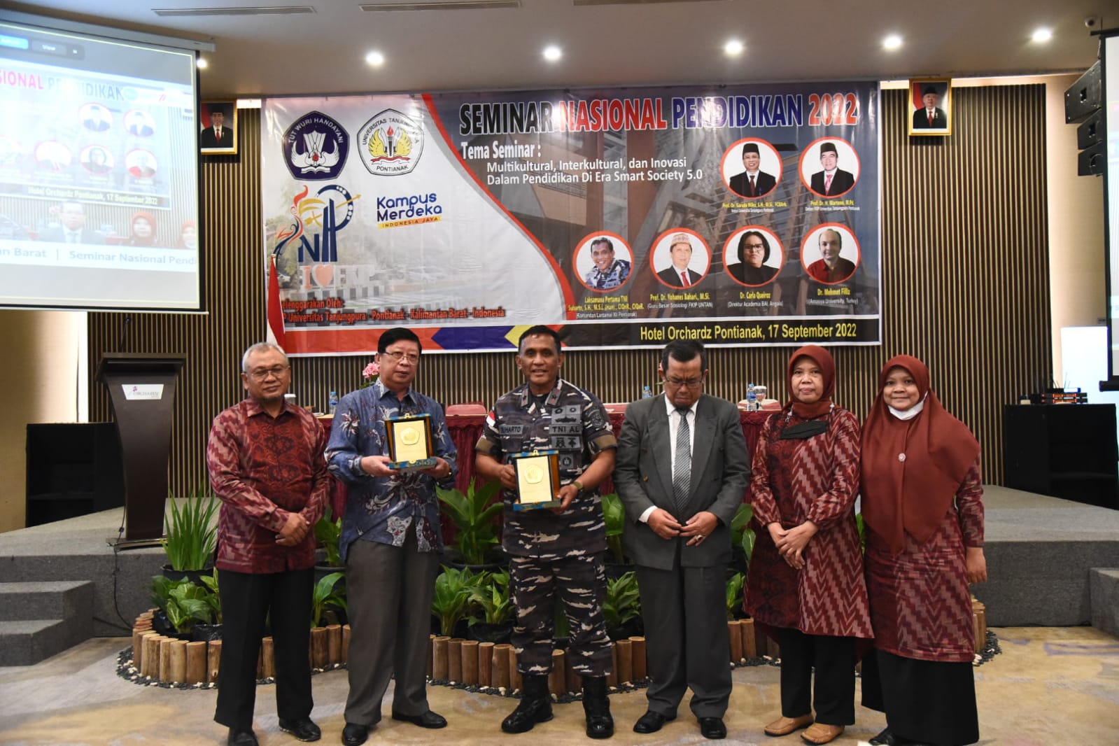 Narasumber dalam Seminar Nasional FKIP Universitas Tanjungpura yakni, Danlantamal XII Laksma TNI Suharto, SH., M.Si. (Han) dengan materi bidang pertahanan, Rektor Untan diwakilkan Wakil Rektor 1 Bagian Akademik Dr. Ir. Radian, Dekan FKIP Untan Prof. Dr. H. Martono, M.Pd., Guru Besar Sosiologi FKIB Untan Prof. Dr. Yohanes Bahri, M.Si., Direktur Academia BAI Angola, Dr. Carla Queiroz (Virtual) dan Amasya University Turkey, Dr. Mehmet Filliz (Virtual).