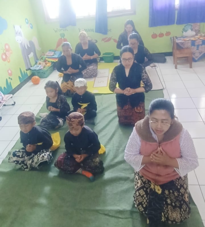 Kegiatan ceria, Pasraman di KB Edelweis Tengger dibimbing langsung oleh Elok Gusmawati S.Pd, H. yang merupakan guru agama Hindu di kecamatan Sukapura.