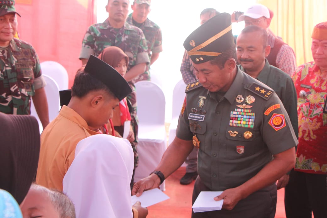 “Selain membantu pembangunan infrastruktur seperti peningkatan jalan, kami juga memberikan bantuan sosial untuk anak-anak yatim di lokasi TMMD ini,” kata Mayjen TNI Novi Helmy Prasetya, Jumat (9/8).