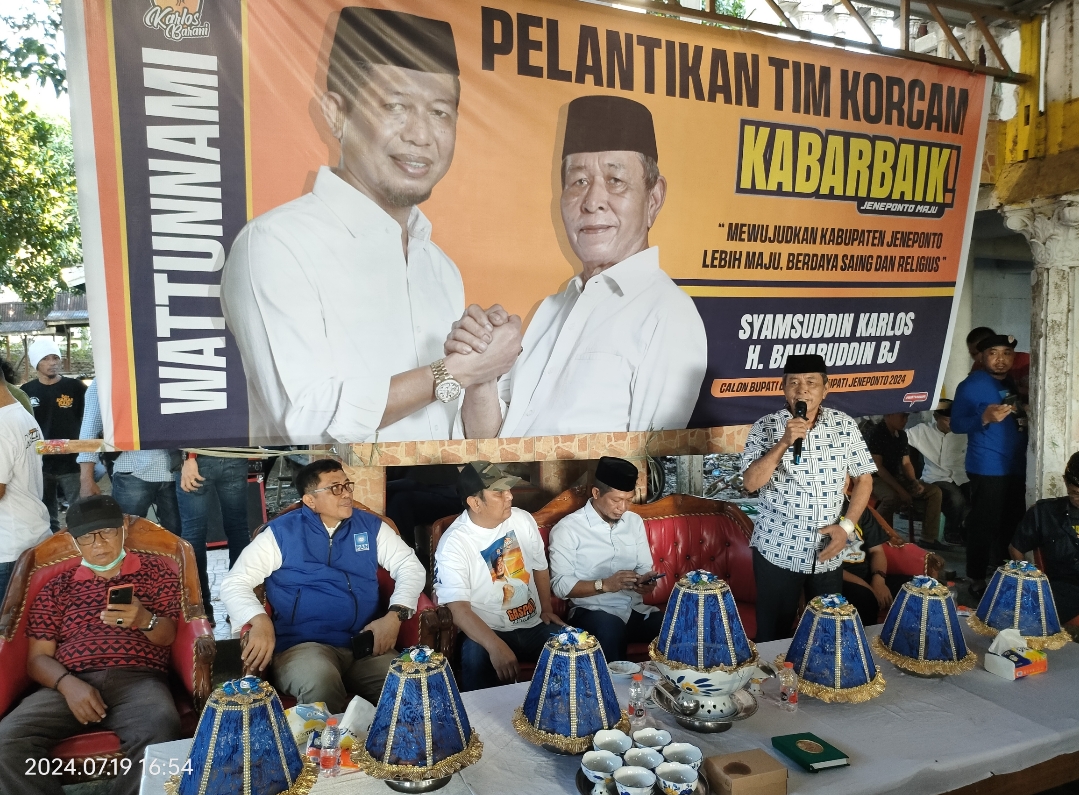 PENJURU. ID | Jeneponto – Pasangan Calon Bupati dan Wakil Bupati Jeneponto, Syamsuddin Karlos dan Baharuddin BJ Kr Nai disore hari ini resmi melantik Tim Korcam langsung empat kecamatan meliputi Kecamatan Tamalateai, Bontoramba, Bangkala dan Bangkala Barat.