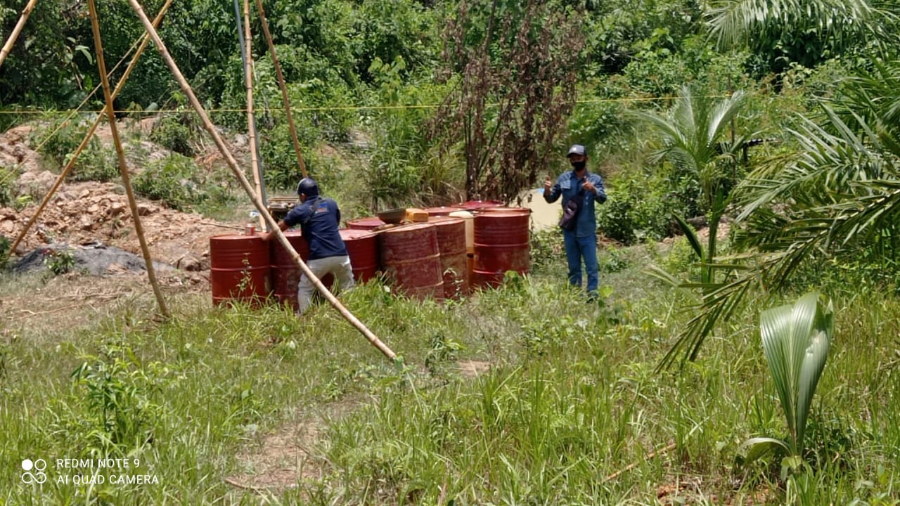 Pantauan dilokasi kegiatan, terlihat aktivitas pengeboran yang dilakukan oleh masyarakat, beberapa peralatan Drilling migas, drum, pipa dan lainnya.