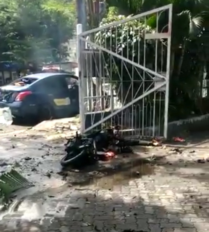 Dari video yang beredar dan diterima tim redaksi Media PENJURU.ID nampak terlihat terduga pelaku bunuh diri tewas ditempat, diduga seorang laki-laki tergeletak di samping pagar Gereja dan nampak sebuah sepeda motor masih mengeluarkan api.