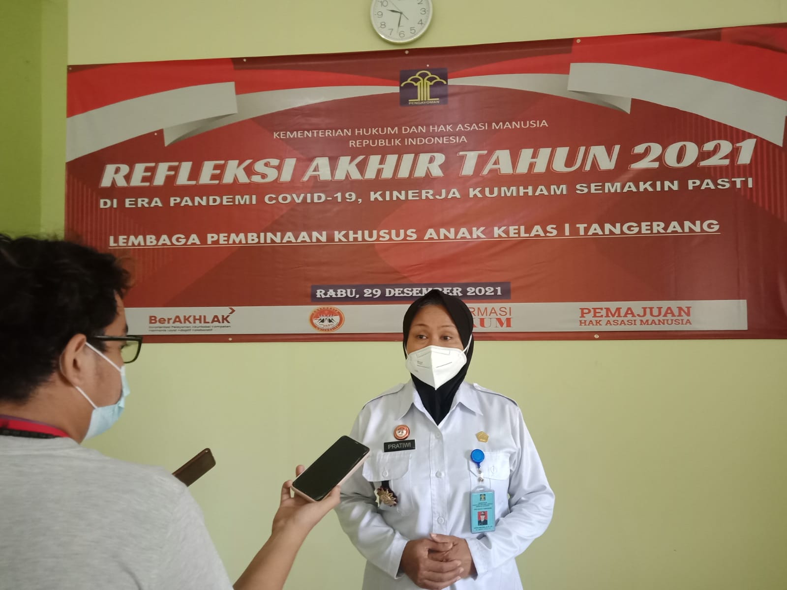 PENJURU.ID|TANGERANG–Lembaga Pembinaan Khusus Anak Kelas l Tangerang melaksanakan kegiatan refleksi akhir tahun 2021bertemakan “Di Era Pandemi Covid-19, Kinerja Kumham Semakin Pasti” bersama para petugas pada Rabu, (29/12) bertempat di Aula Ruang rapat Utama Lembaga Pembinaan Khusus Anak Kelas l Tangerang dipimpin langsung oleh Kepala Lembaga Pembinaan Khusus Anak Kelas l Tangerang Setyo Pratiwi.