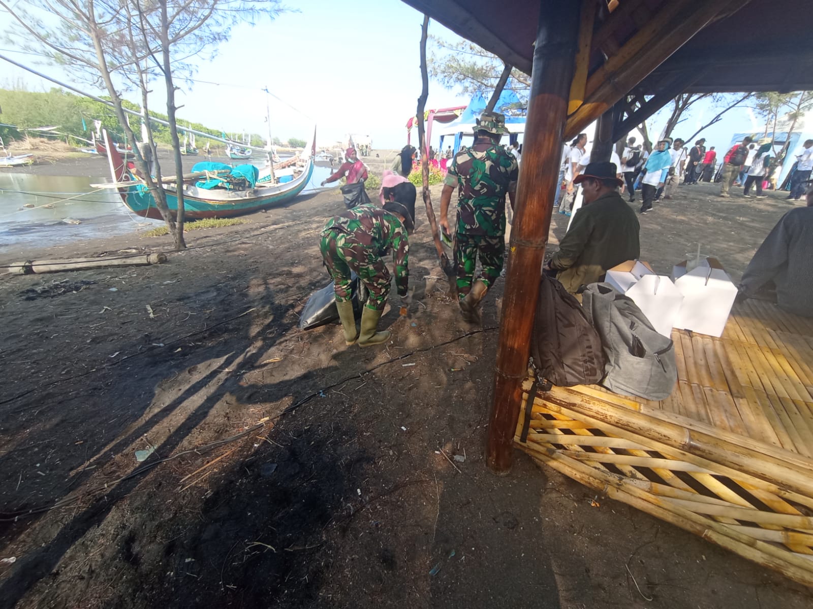 PENJURU.ID | Probolinggo – Koramil 0820/16 Paiton ikut ambil bagian dalam kegiatan bersih-bersih di Pantai Greenthing Beach Desa Randu Tatah Kecamatan Paiton Kabuapten Probolinggo, Senin (18/12).