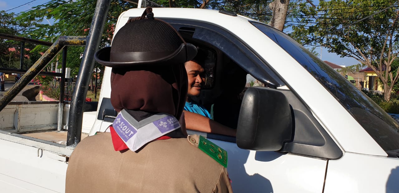 Saka Bhayangkara Polres Jeneponto sebagai Satuan Pramuka binaan Polres Jeneponto yang turut hadir berperan memberikan himbauan didampingi oleh Personil Sat Binmas Polres Jeneponto yang dipimpin oleh AKP Syahrul, SH.