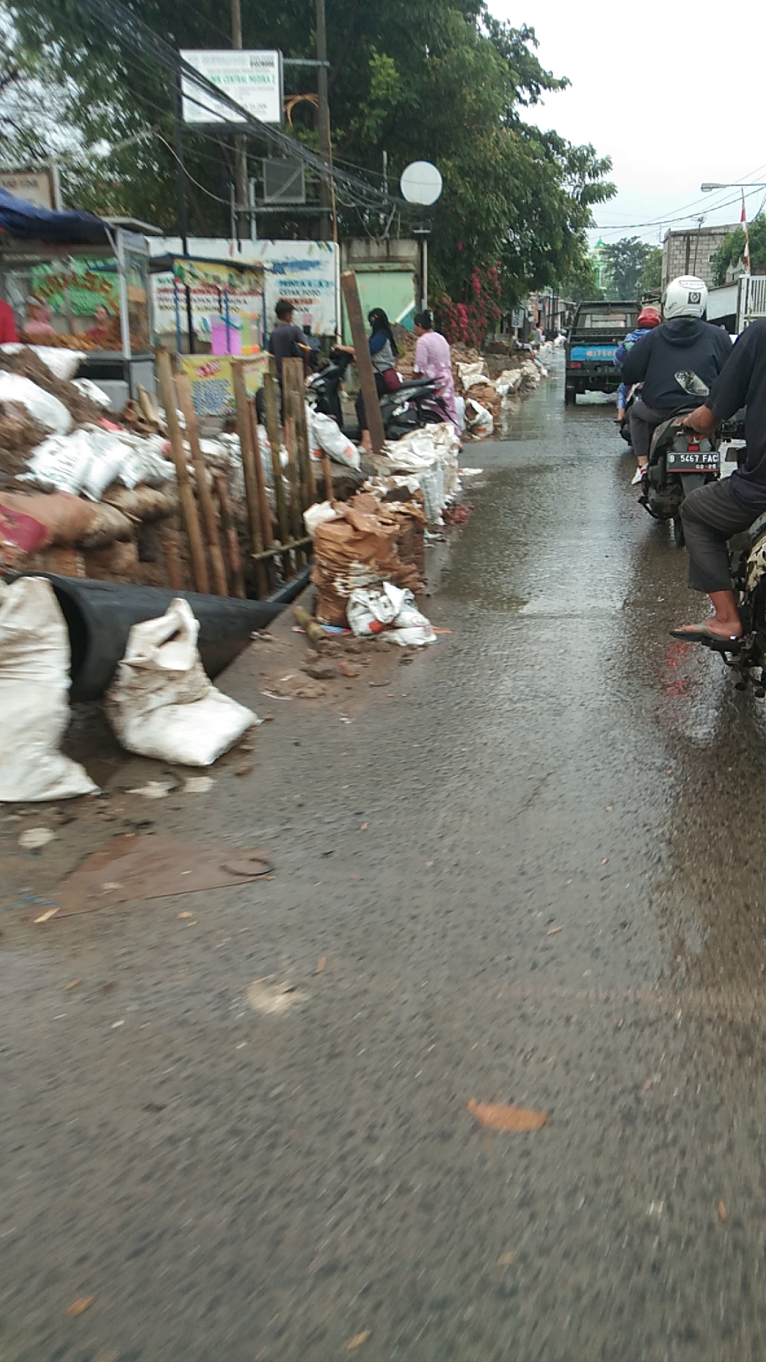 “Saluran air ga jalan karena drainasenya kecil dan kurang dalam, ditambah banyak jembatan semen yang dibuat warga ditempatnya. Sehingga saluran air semakin mampet, ga ngalir,” Tambah Aris.