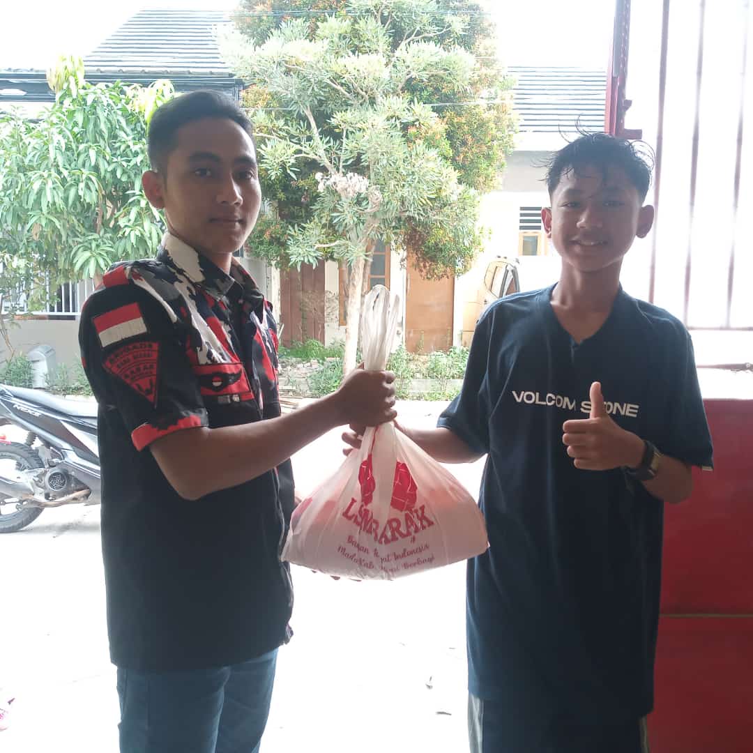 PENJURU.ID | Kabupaten Bekasi | Lembaga Swadaya Masyarakat (LSM) Barak (Barisan Rakyat Indonesia) Markas Daerah (Mada) Kabupaten Bekasi salurkan 700 paket sembago bagi warga kurang mampu, penyaluran sembako dilaksanakan di Kantor Sekretariat Barak Indonesia Mada Kab. Bekasi, Kampung Ceger RT. 02/03, Tanjung Baru, Cikarang Timur. Rabu, (27/04/2022).