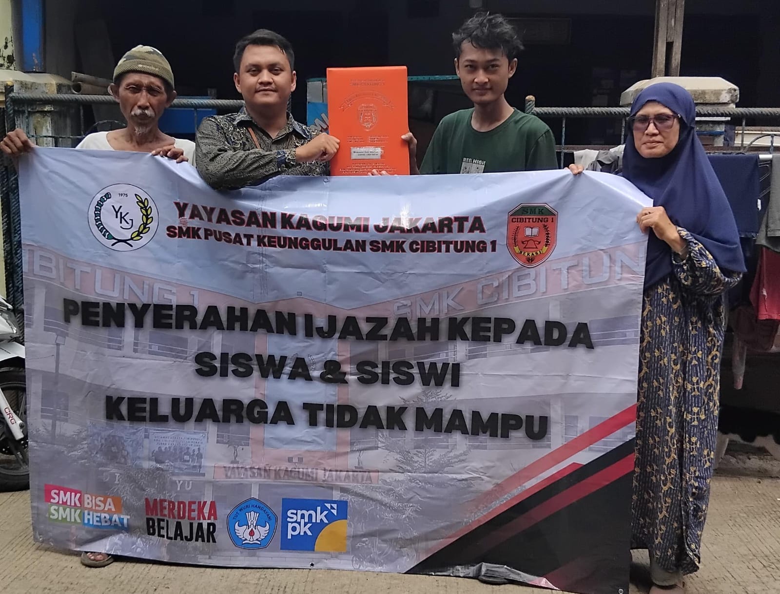 PENJURU.ID I Kabupaten Bekasi – SMK Cibitung 1 yang terletak di Gg. Keramat Jalan. Selang Bulak No 130 Desa Wanajaya Cibitung, Kabupaten Bekasi melakukan program penyerahan ijazah alumni secara door-to-door, dengan mengunjungi rumah-rumah siswa langsung untuk menyerahkan ijazah siswa-siswi yang belum di ambil hingga sampai 2 tahun lamanya.