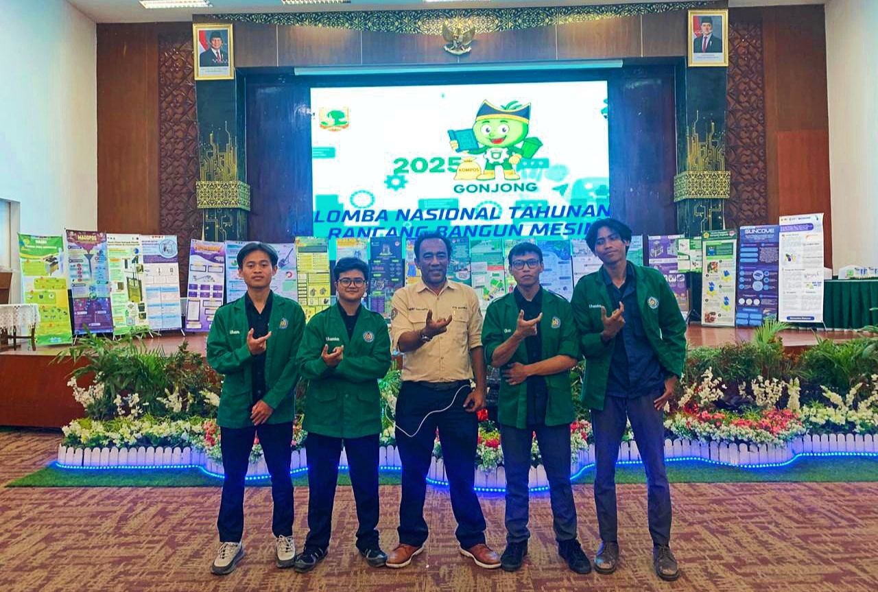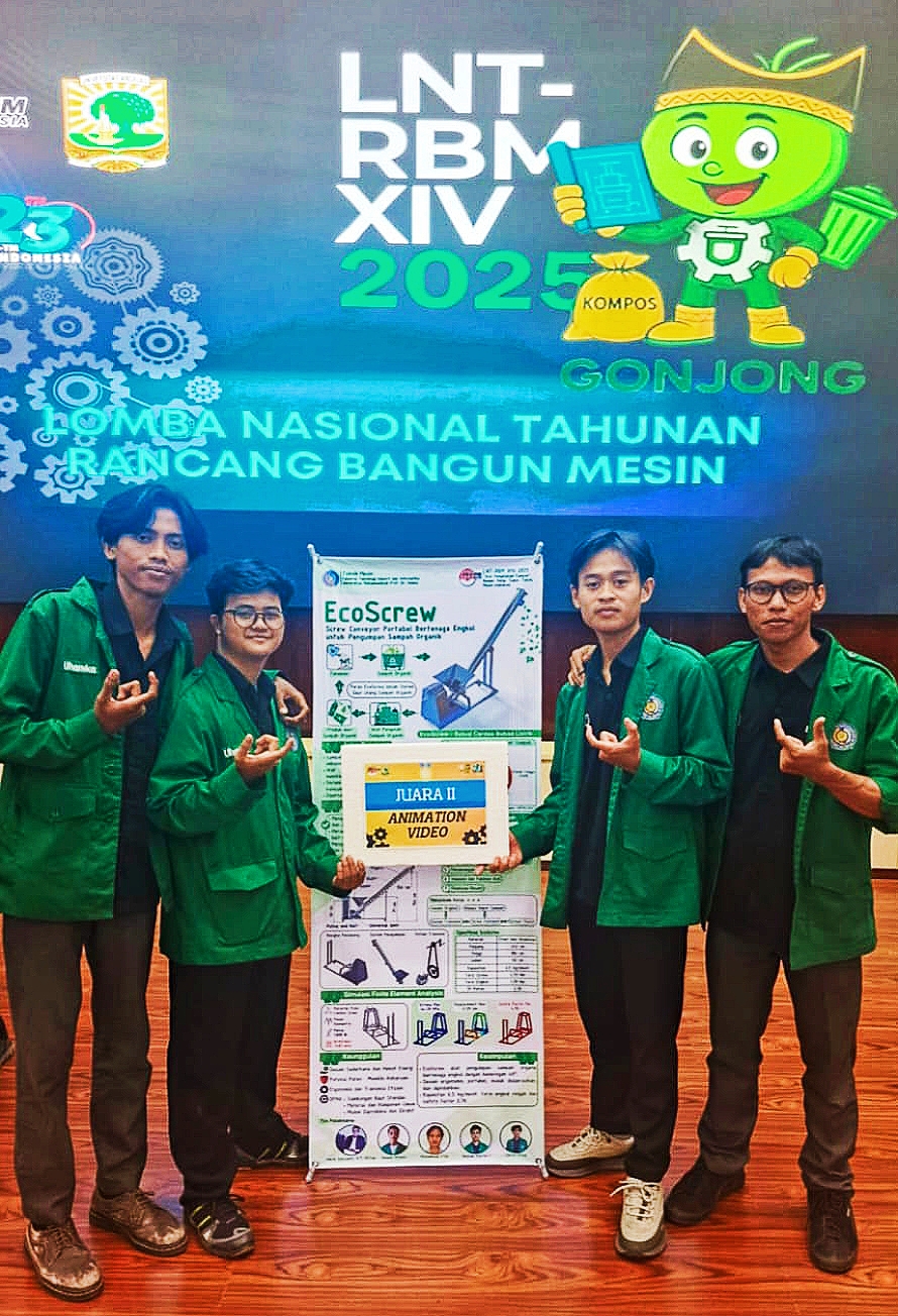 Tim yang terdiri dari Ahmad Ahdani (Ketua), Muhammad Irfan, Reyhan Martin Firnanda, dan Hanad Arizal, dibimbing oleh Hendi Saryanto, ST, M.Eng, menampilkan karya inovatif berjudul “Desain Alat Screw Pen-Supply Sampah Organik Berbasis Screw Conveyor dengan Modifikasi Sistem Transmisi”.