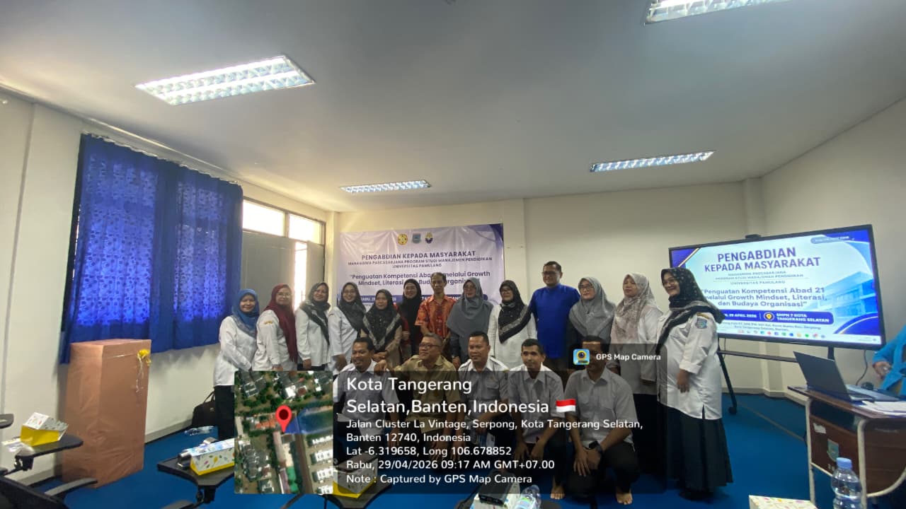 PENJURU.ID | Tangerang Selatan – Mahasiswa Program Pascasarjana S2 Manajemen Pendidikan Universitas Pamulang (Unpam) melaksanakan kegiatan Pengabdian kepada Masyarakat (PKM) di SMP Negeri 7 Kota Tangerang Selatan. Kegiatan ini mengusung tema “Penguatan Kompetensi Abad 21 melalui Growth Mindset, Literasi, dan Budaya Organisasi”.